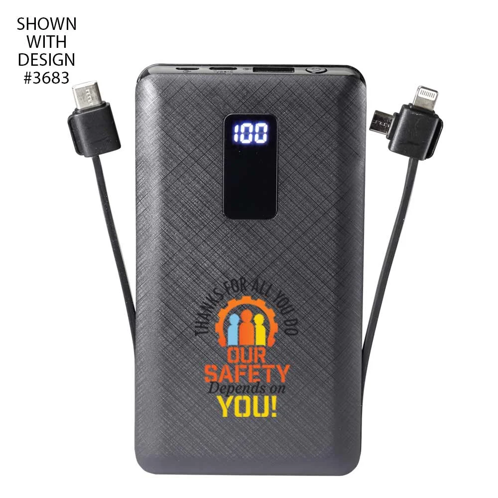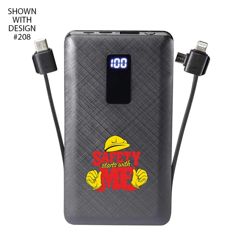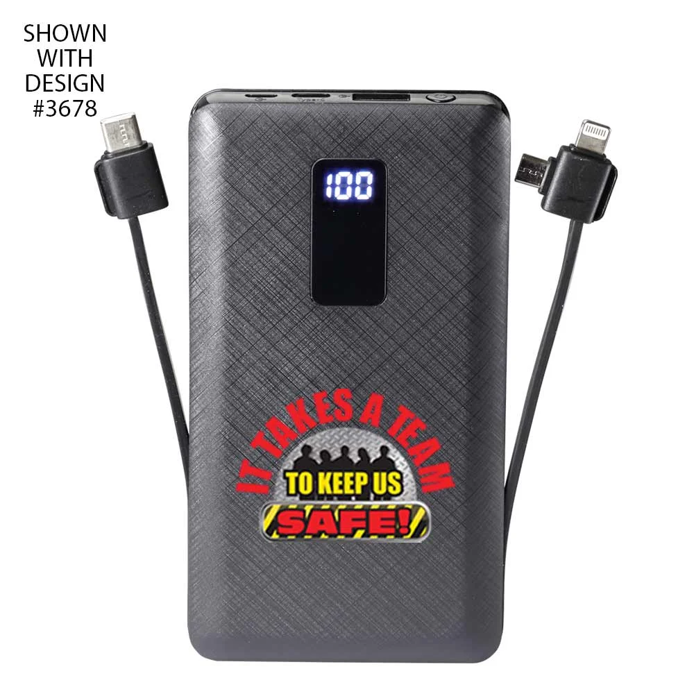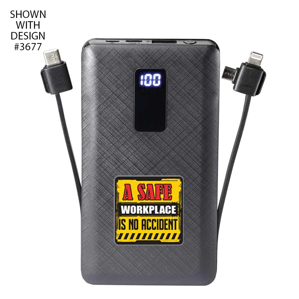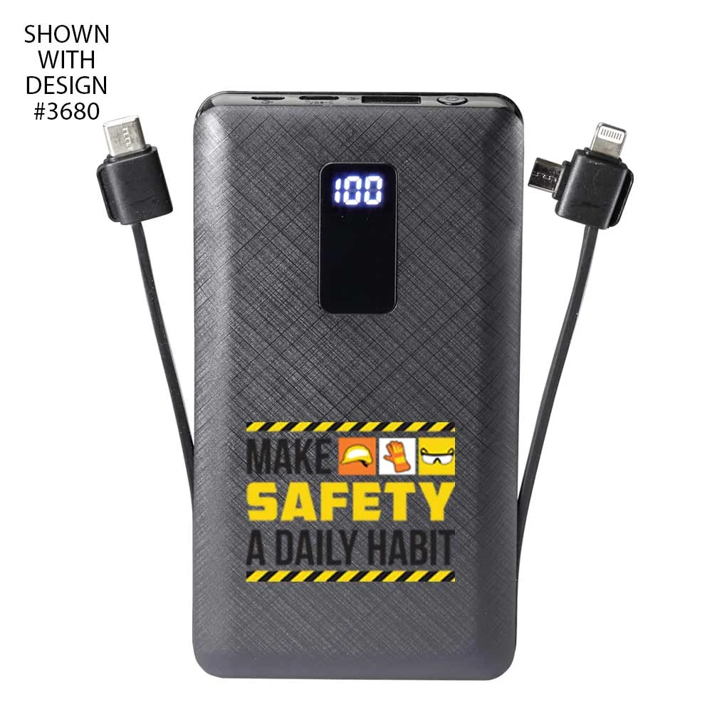 Workplace Safety 10,000 mAh 3-in-1 Power Bank With Built-In Charging Cables-Personalized