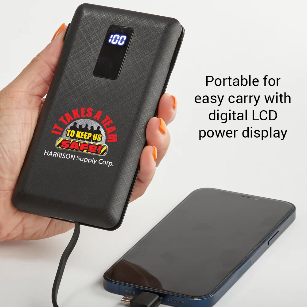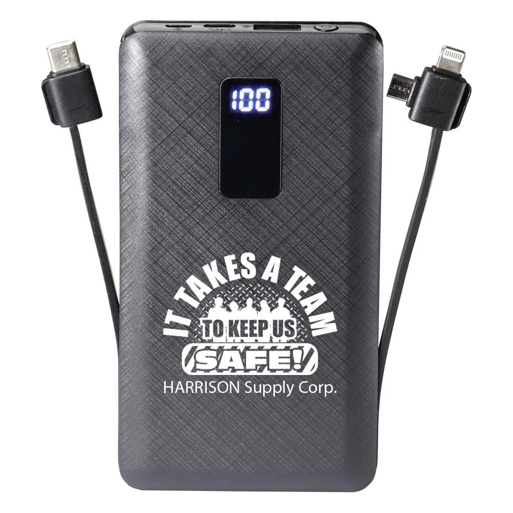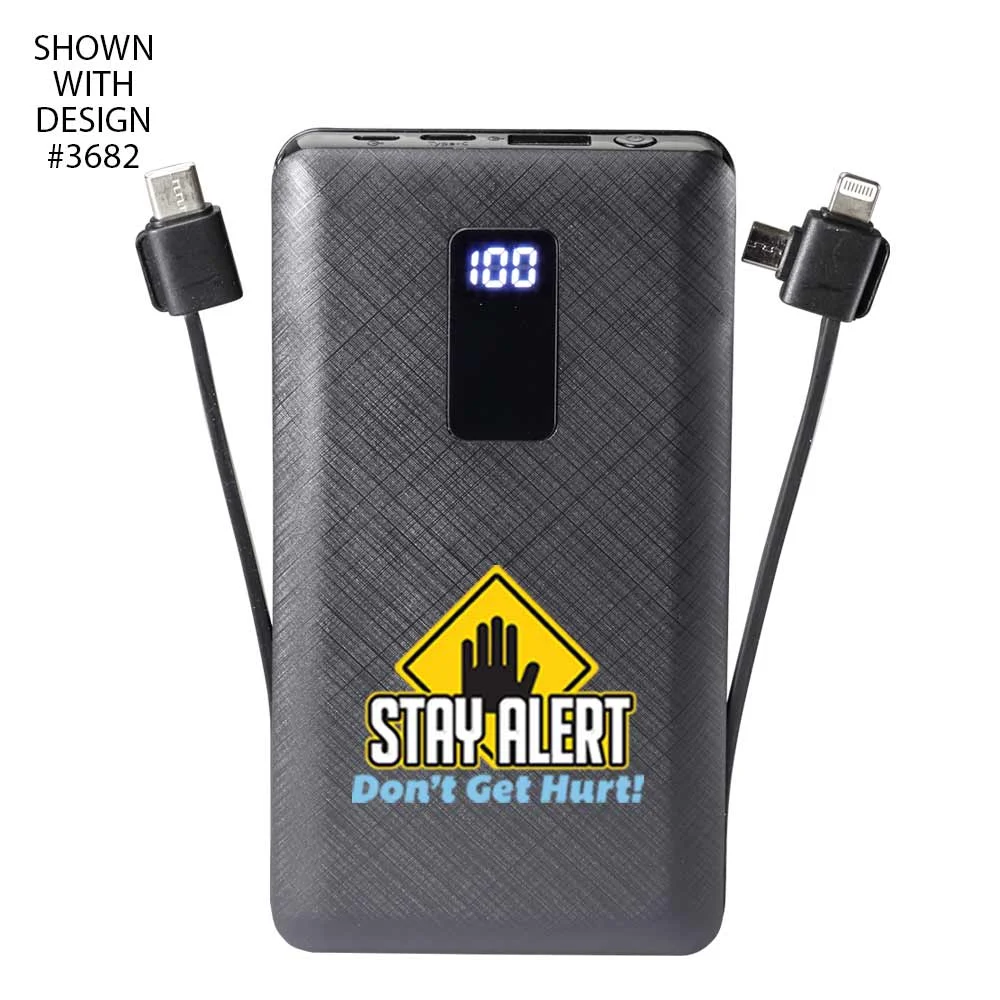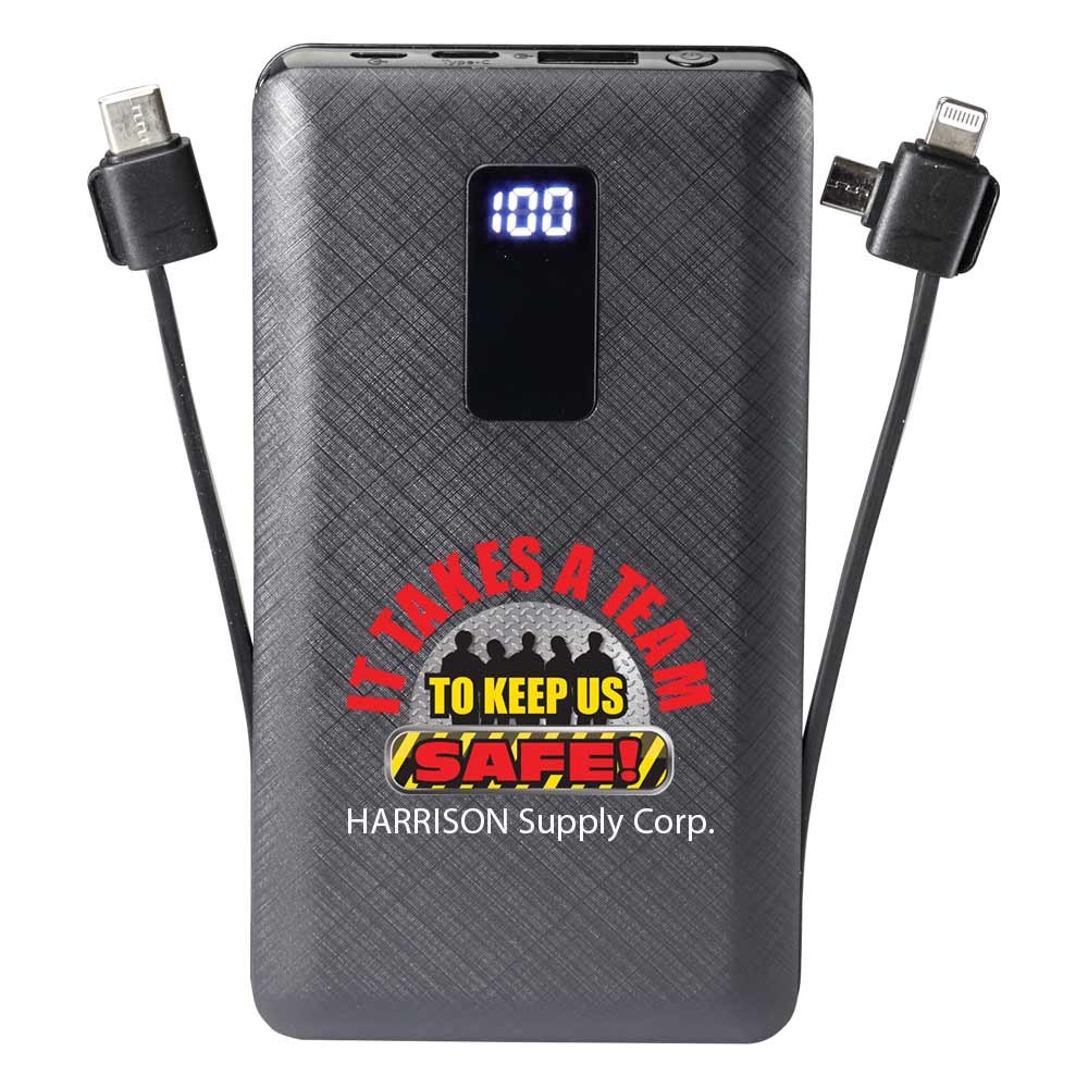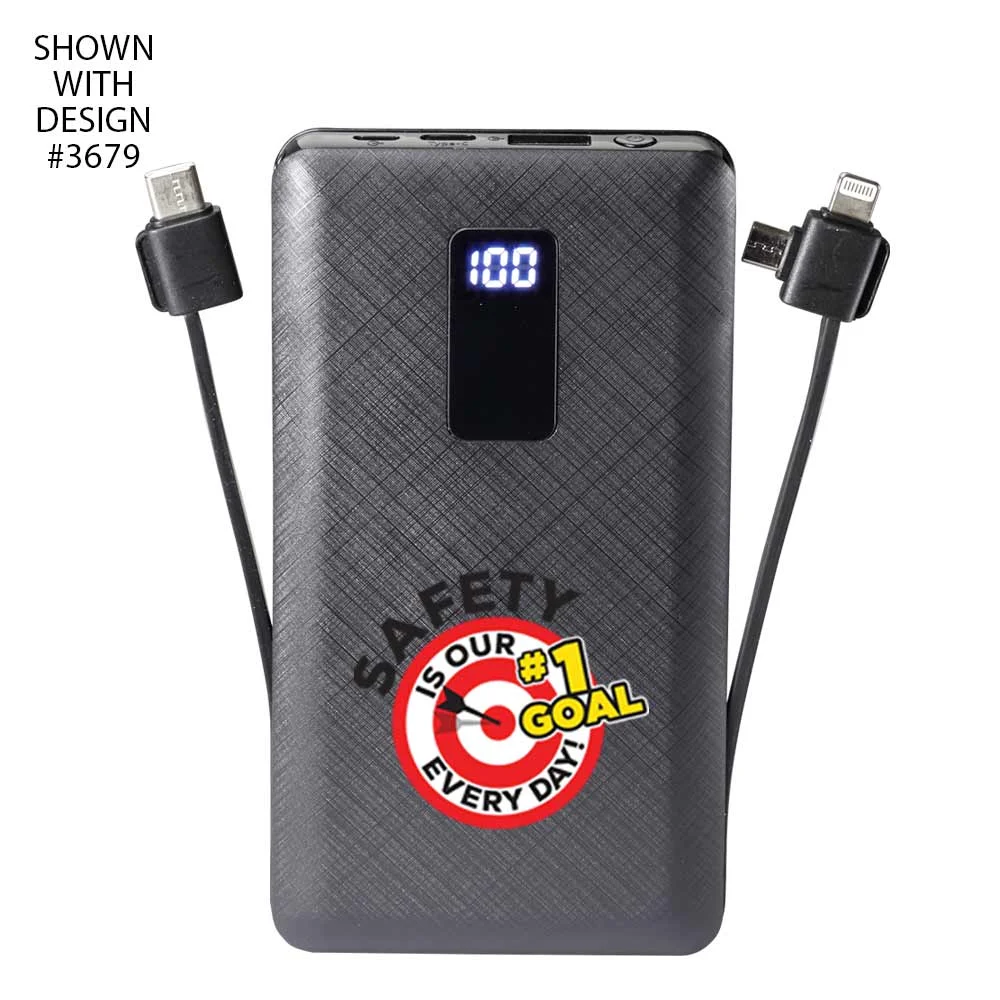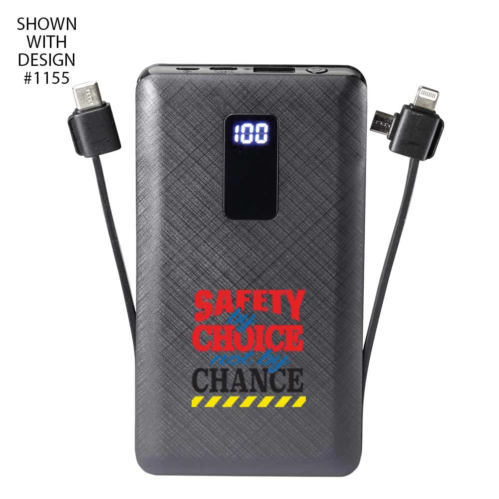 Workplace Safety 10,000 mAh 3-in-1 Power Bank With Built-In Charging Cables-Personalized