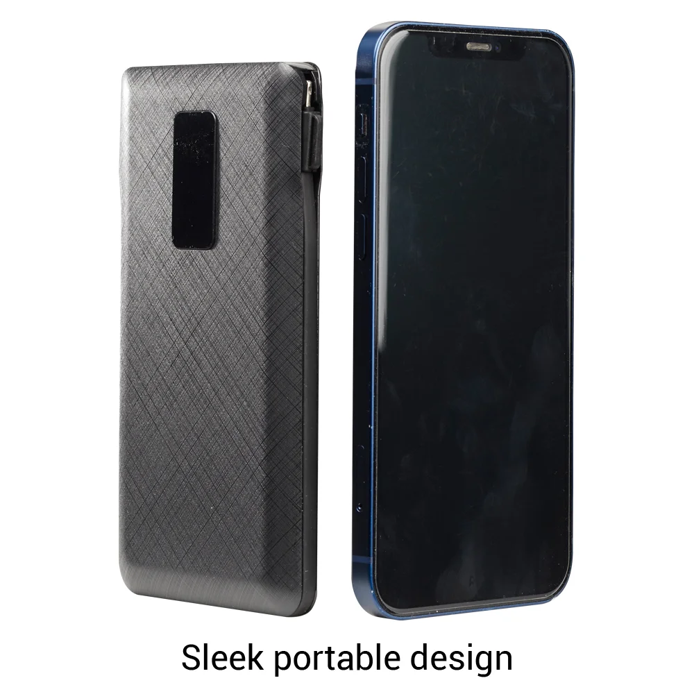 • 3-in-1 charging: Built-in output cables include Micro USB, USB, Lightning, and Type-C