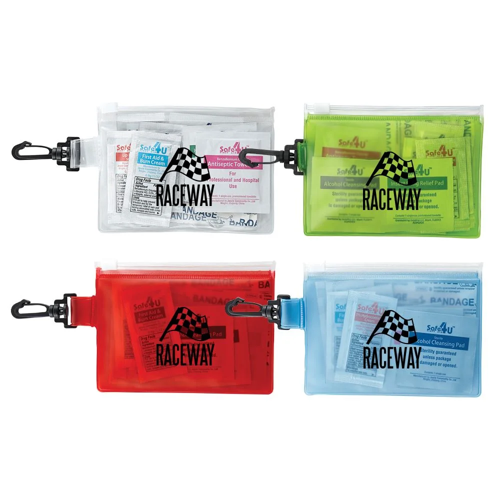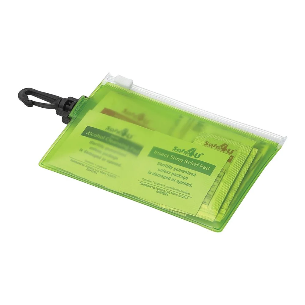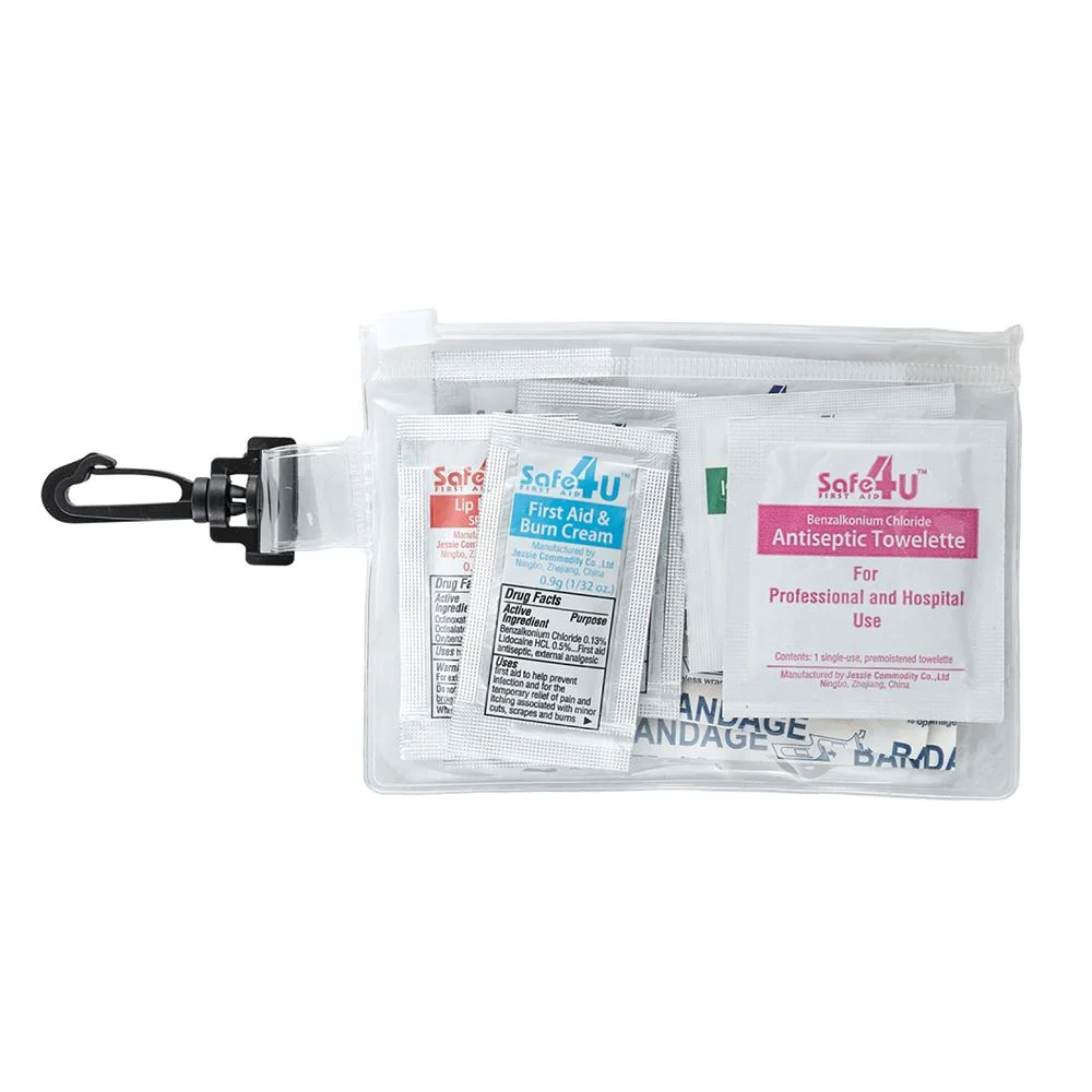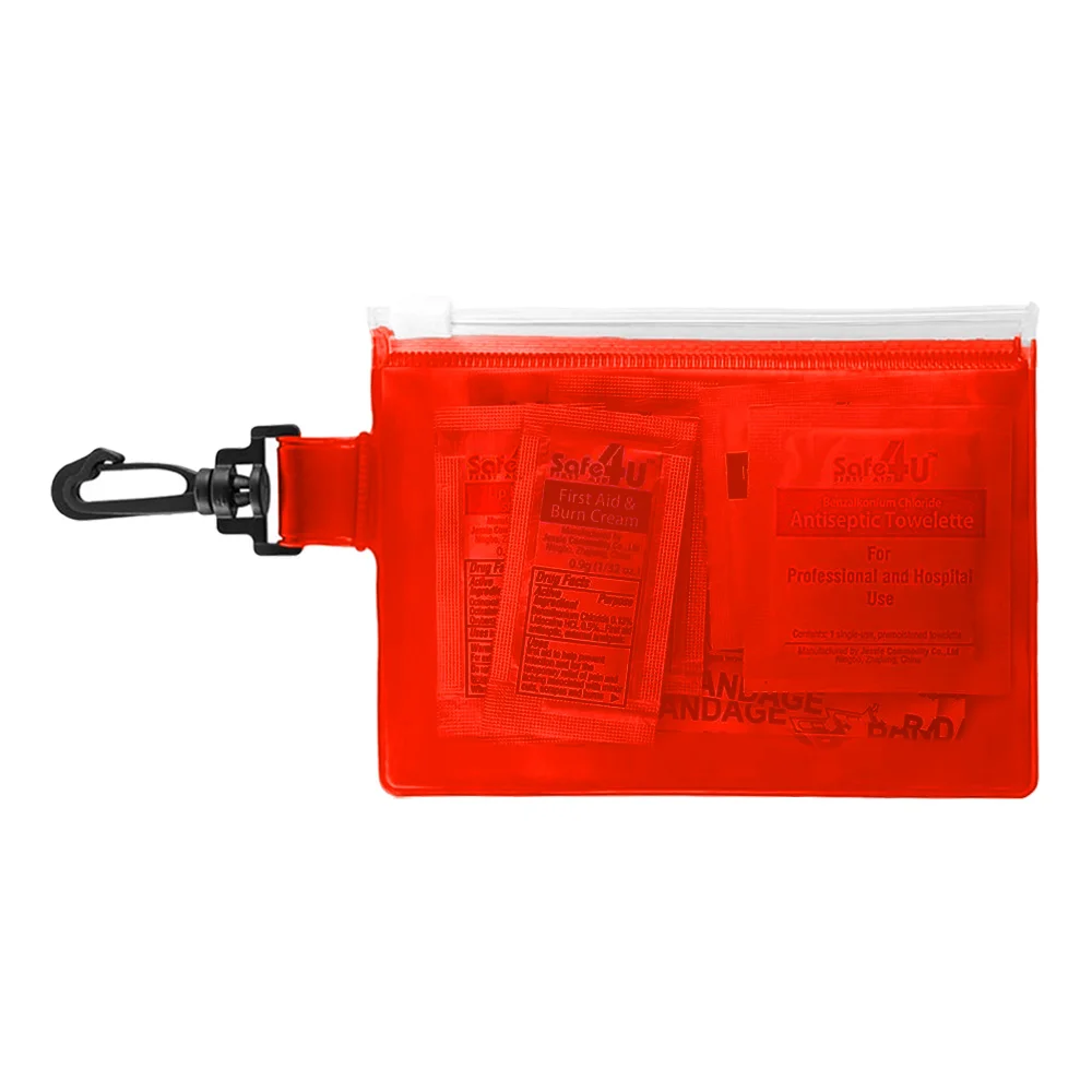 Travel-sized first-aid kit in a PVC pouch with a plastic zip closure