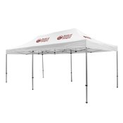 Canopy is constructed of durable, weather-resistant, flame-retardant-treated, 400-denier polyester (FR rated for exhibit halls)
