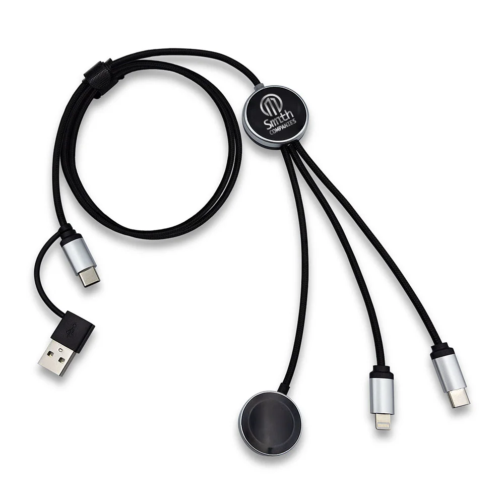 Velora is a premium 3-in-1 braided cable that combines Lightning and Type-C connectors with an Apple/Samsung Watch charging attachment into one seamless solution