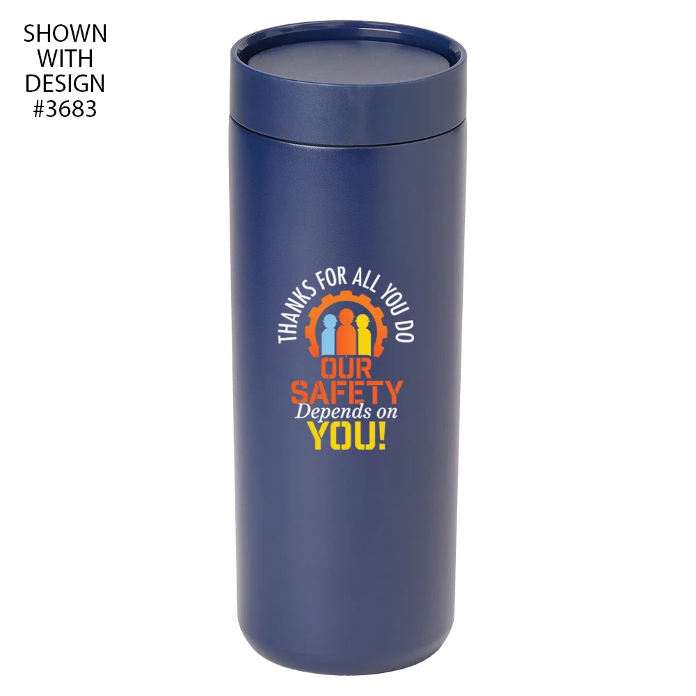 *Workplace Safety Navy 360 Degree Sipper Push & Sip Double-Wall SS Vacuum-Insulated Spill-Proof Tumbler 18-Oz. Personalized