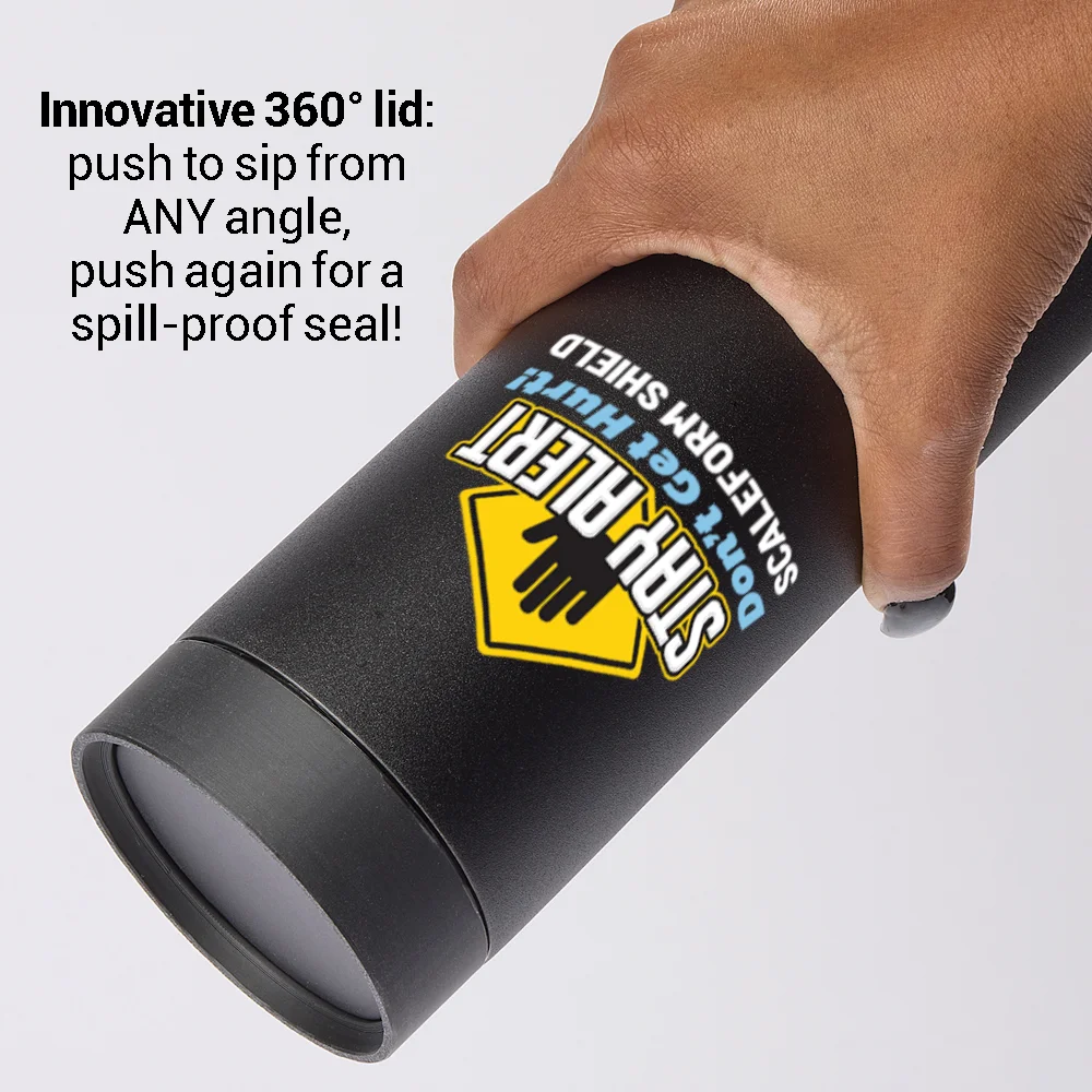 *Workplace Safety Black 360 Sipper Push & Sip Double Wall SS Vacuum Insulated Spill Proof Tumbler 18-Oz