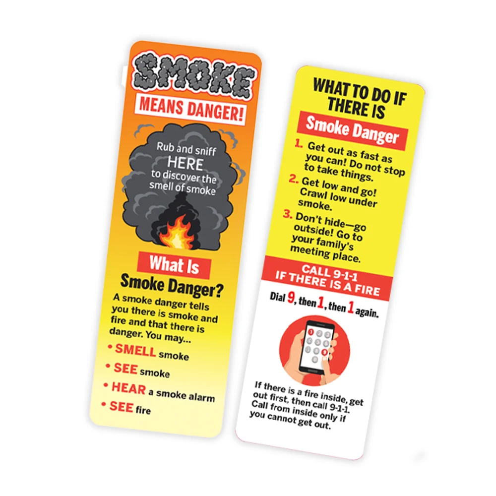 Smoke Danger Scratch & Sniff Scented Bookmark: Two-sided design; Back lists instructions for safety in a fire-related emergency