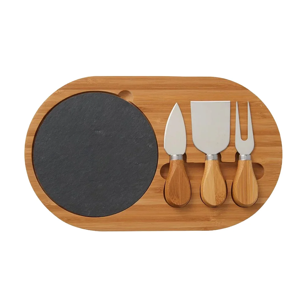 4-Piece Oval Slate Cheese Board Set - Personalization Available