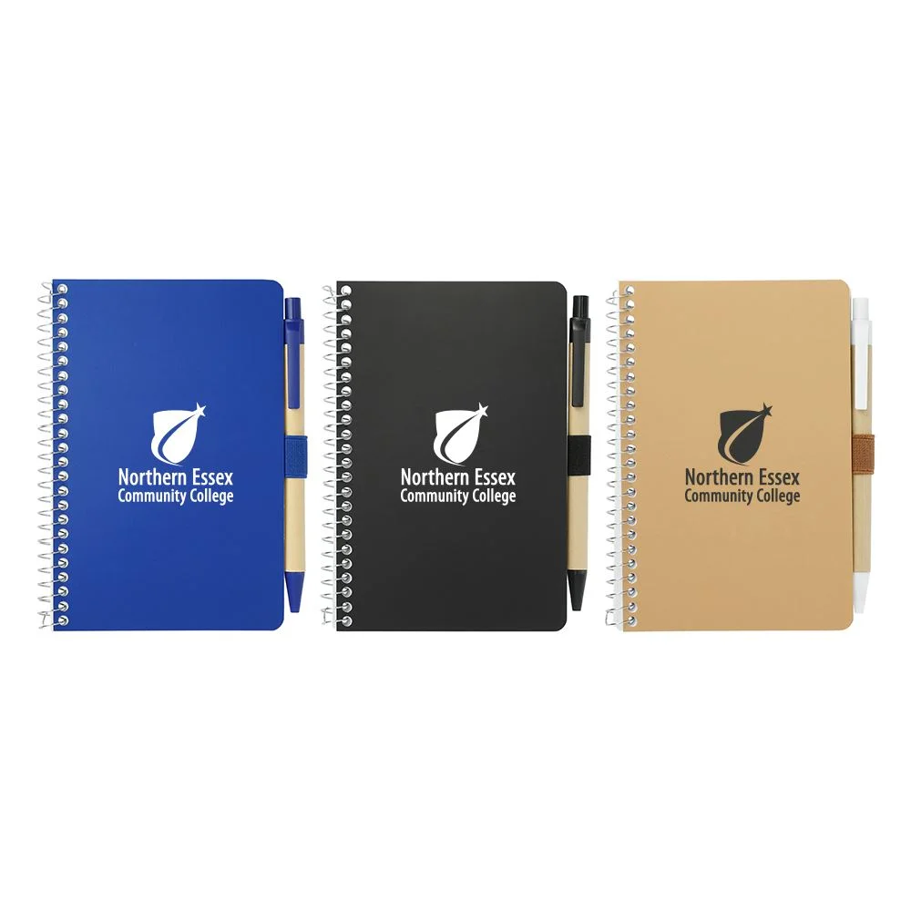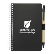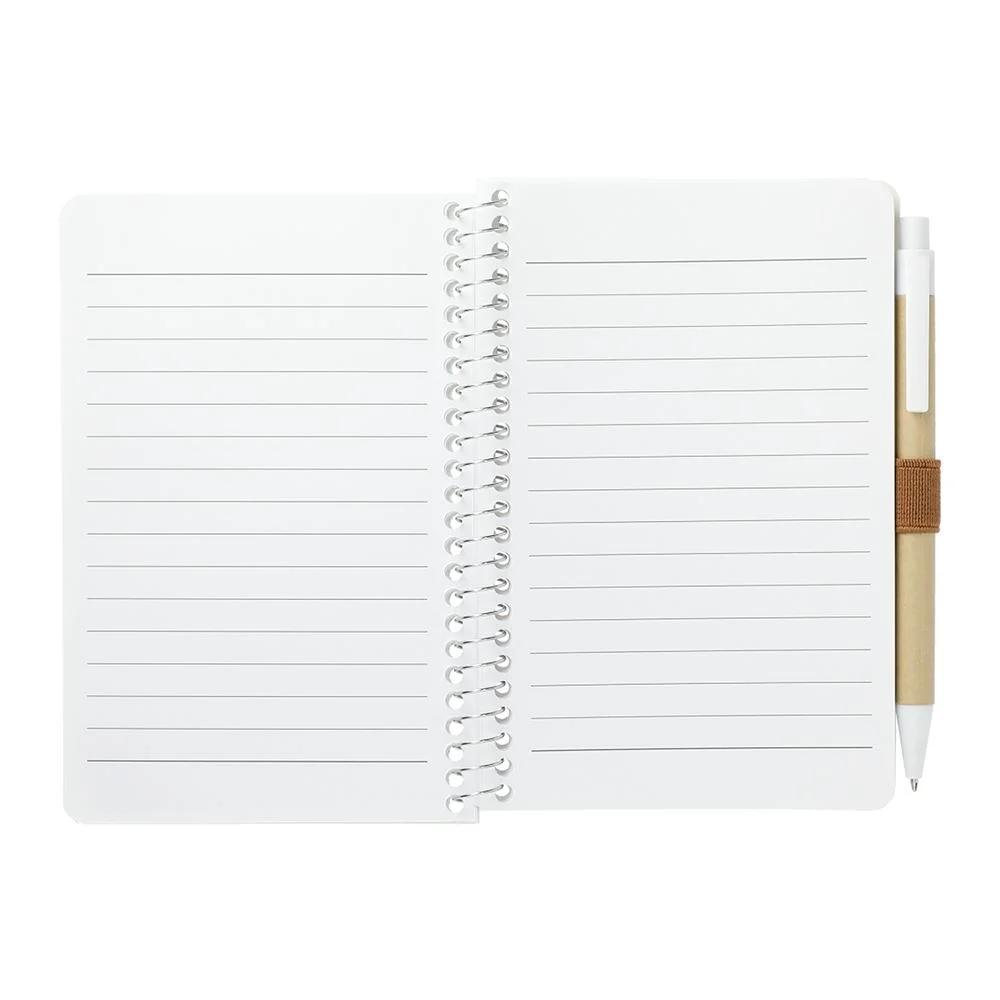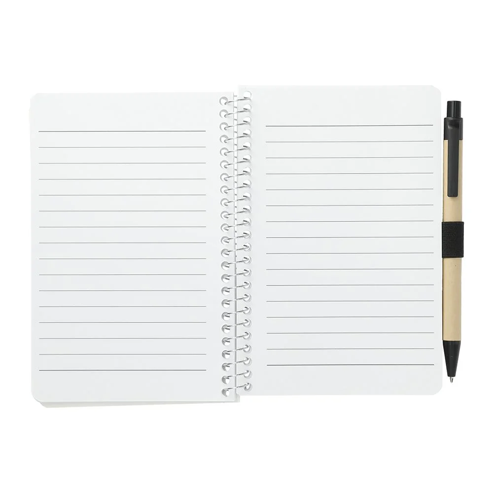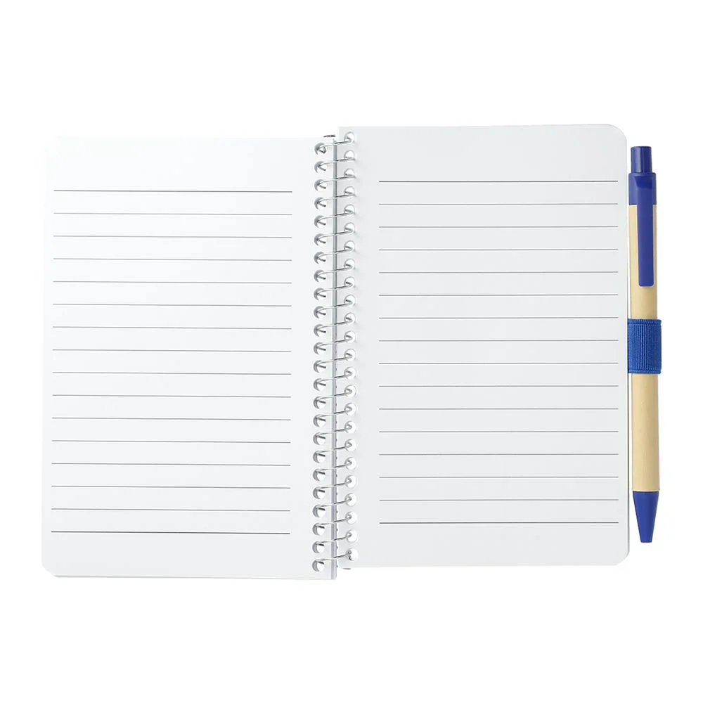 The 4" x 6" Mix FSC Pocket Notebook with Pen features a FSC-certified craft paper cover with 70 sheets of white FSC-certified, soy-base ink lined paper