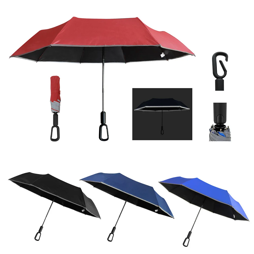 46" Arc Reflective Umbrella With Carabiner Handle - One-Color Personalization Available