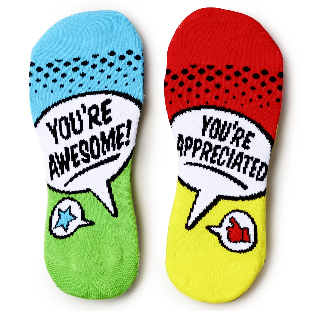 "Toe"-tally Awesome Ankle Socks: Cotton blend; Thick, cushioned soles; Each pair comes polybagged with a FREE appreciation card; One size fits most