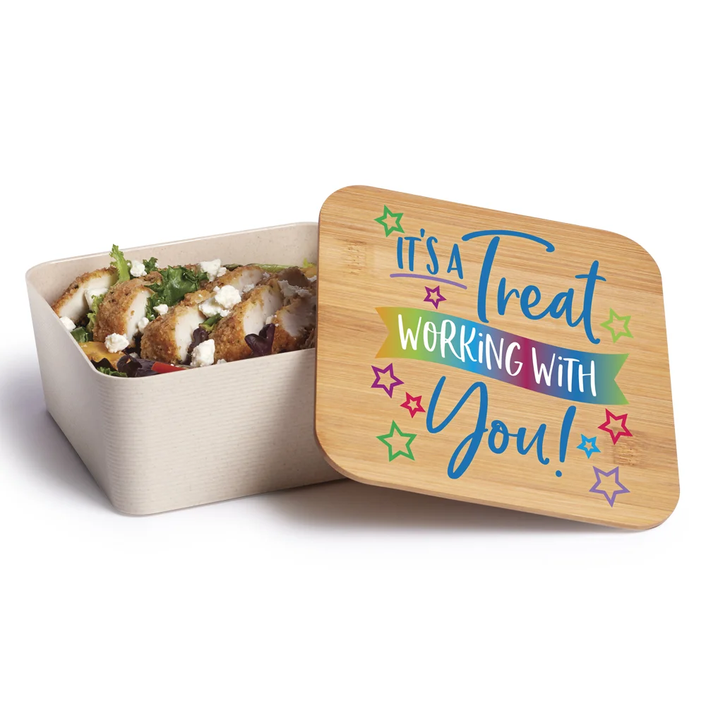 Eco Food Container: Container and utensils made of wheat straw; Durable bamboo lid is natural, recyclable, and sustainable; Elastic strap keeps container closed tight and has individual slots to store included knife, fork, and spoon; Eco friendly; Reusable; BPA free; Note: Hand wash recommended