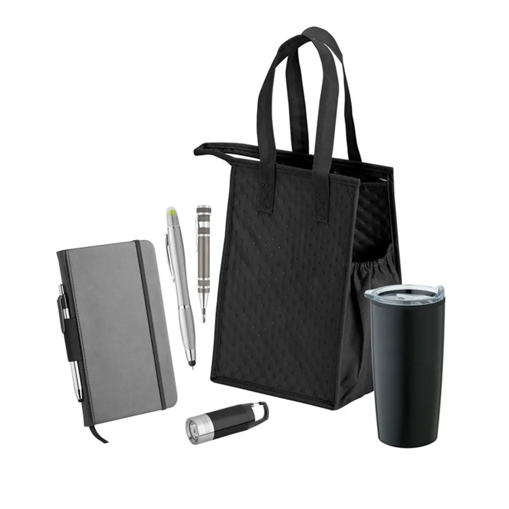 Flashlight: 3-1/2"L, Tote Bag: 8"W � 12"H � 7"D, Notebook: 5 1/8"W � 8-1/4"H, Pen : 1/2"W X 5 5/16"L