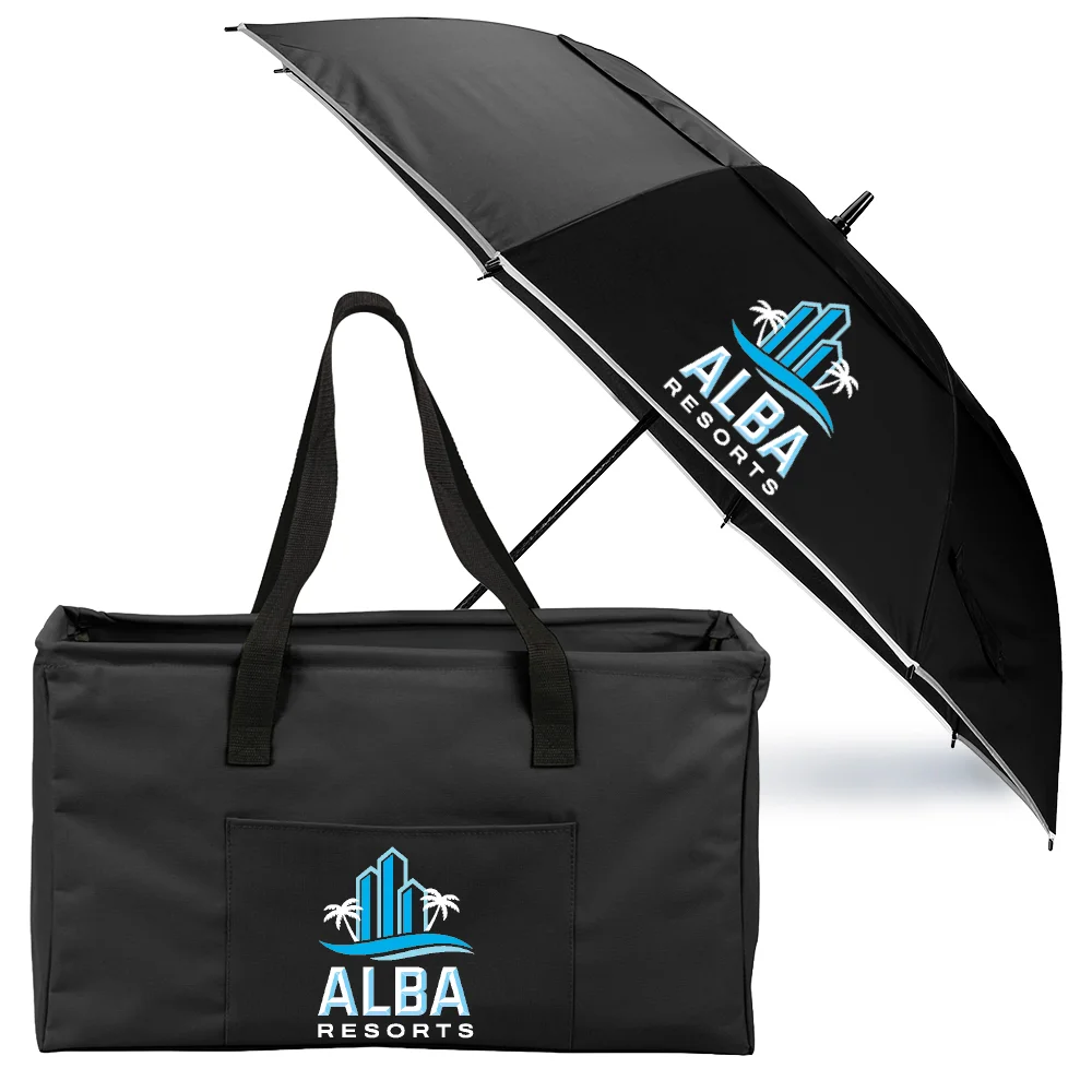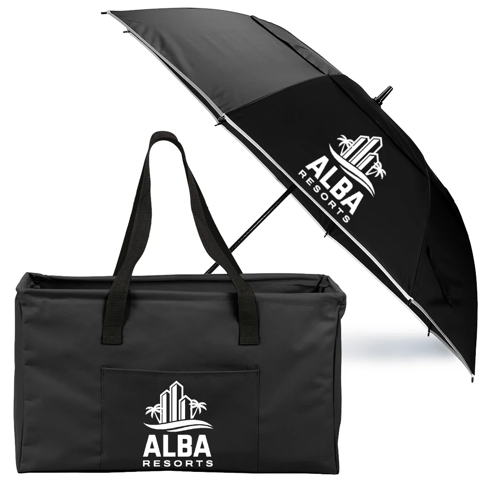 2-piece gift set includes: 60" Auto-Open Wind-Resistant Umbrella With Safety Reflective Trim & Utility Tote