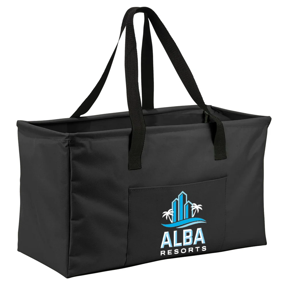 Personalized Tote: Extra-large open main compartment for maximum storage; 11" drop handles for easy carrying; Sturdy wire rim adds structure and stability; Carries groceries, clothing, and daily essentials; 600-denier polycanvas