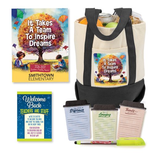 Planner: 8 1/2" X 11" (Closed) 48 Pages; Tote Bag: 13" X 11", X 6"; Insert Card: 10.76" X 7.09"; Pad &Amp; Pen Set:, Card; 4 1/4" X 5"; Sticky Pad: 3 1/4" X 4 3/4"; 3-In-1 Pen:, 5 1/2"L, Ink: Black, Highlighter: Yellow; Polybagged