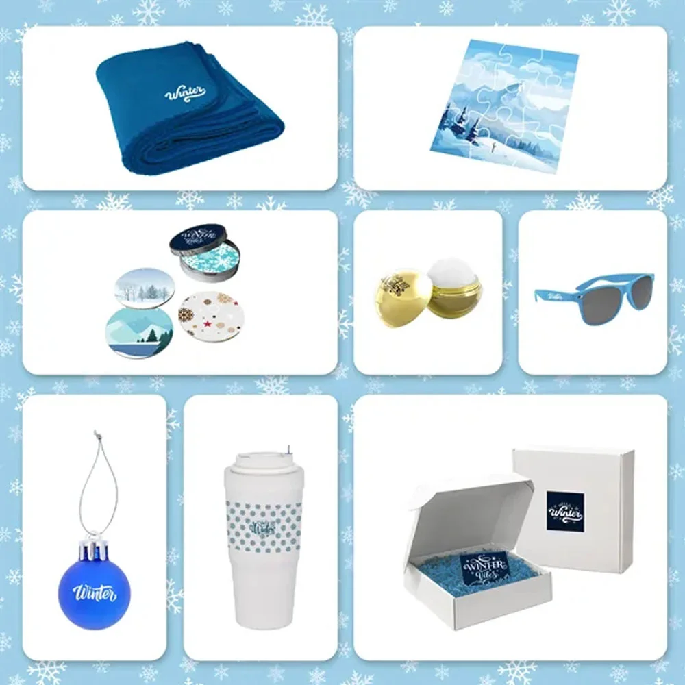 Lip Balm: 1"W X 0.3"H / Versa Cup: 12.4"W X 3.7"H, Fleece Blanket, 2"W X .31"H / Sunglasses, 3.75"D, Tin, 3.75"D / Coasters, .75"W / Ornament: 5.5"W X 5.5"H, Up To 3 Lines/Logo; 35 Characters Max Per Line