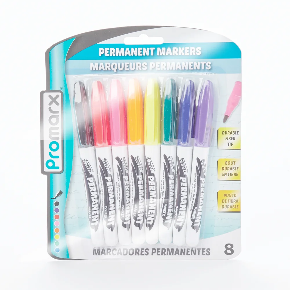 • 8 assorted color markers per pack (Black, Red, Pink, Orange, Yellow, Green, Blue, Purple)