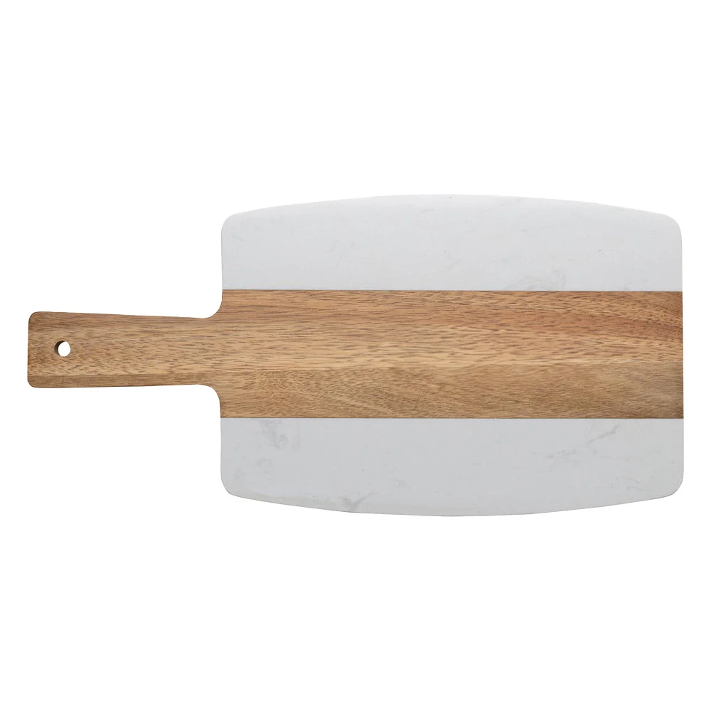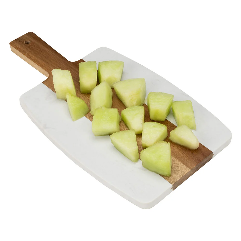 Cutting board made from a premium blend of acacia wood and marble for a sophisticated, modern look