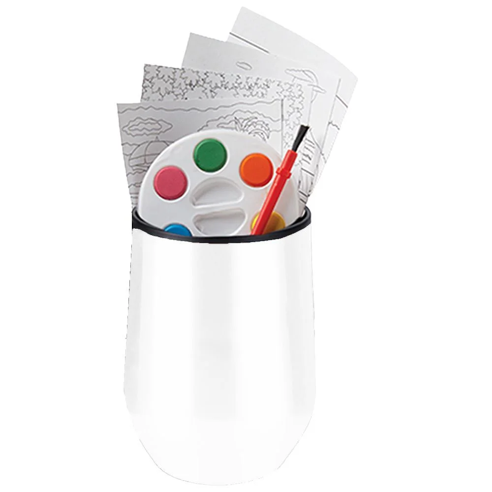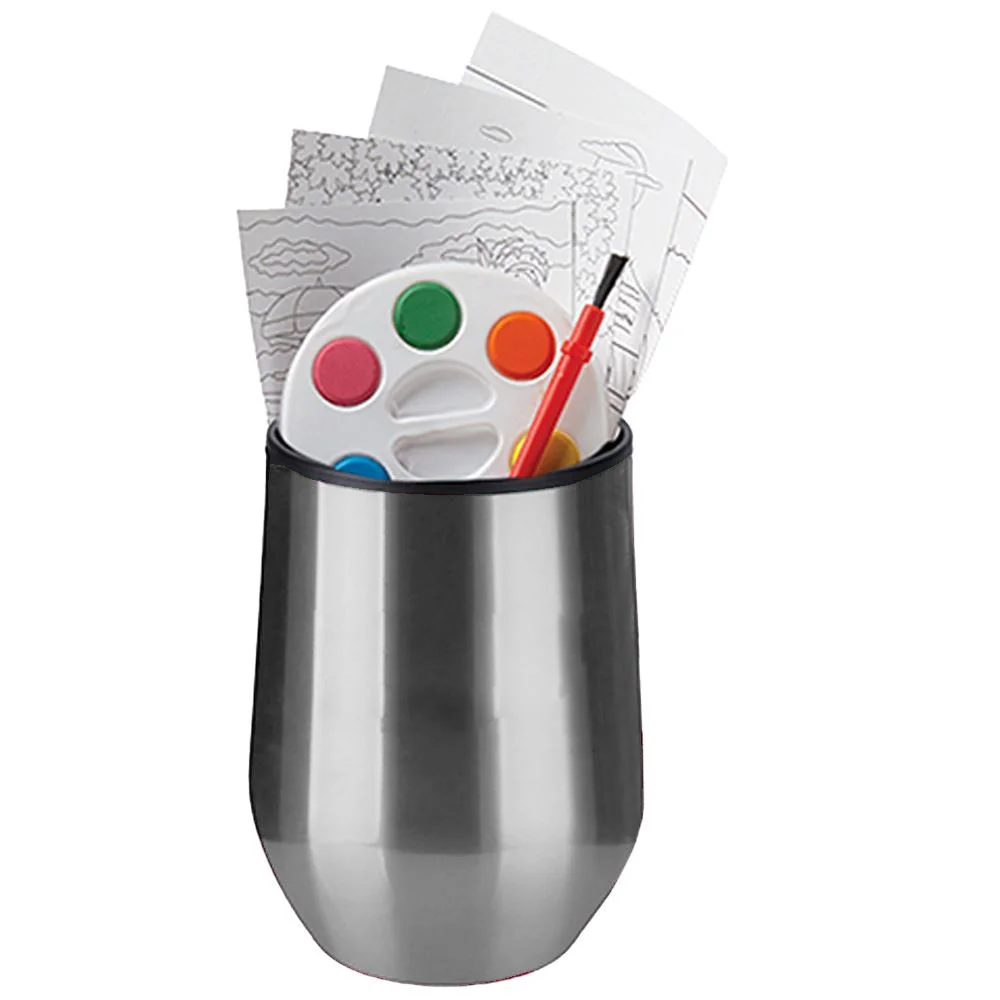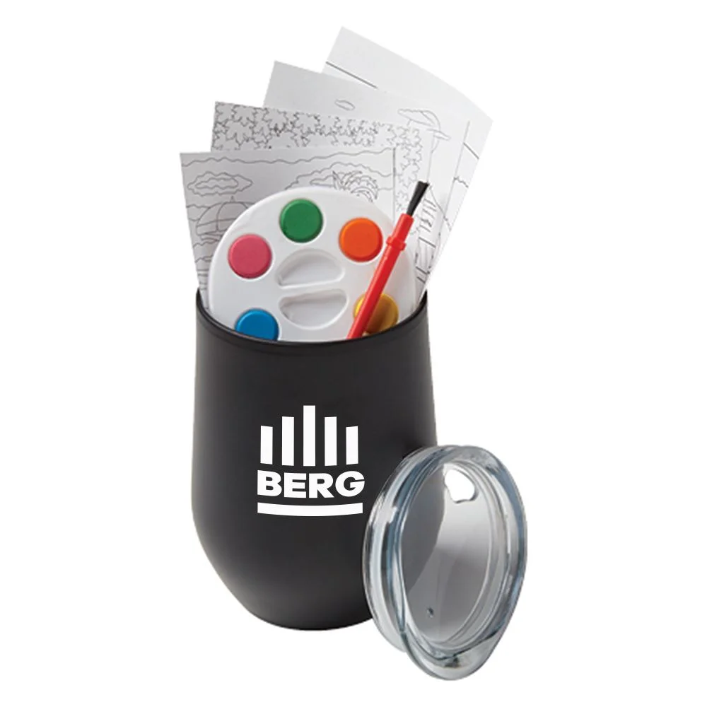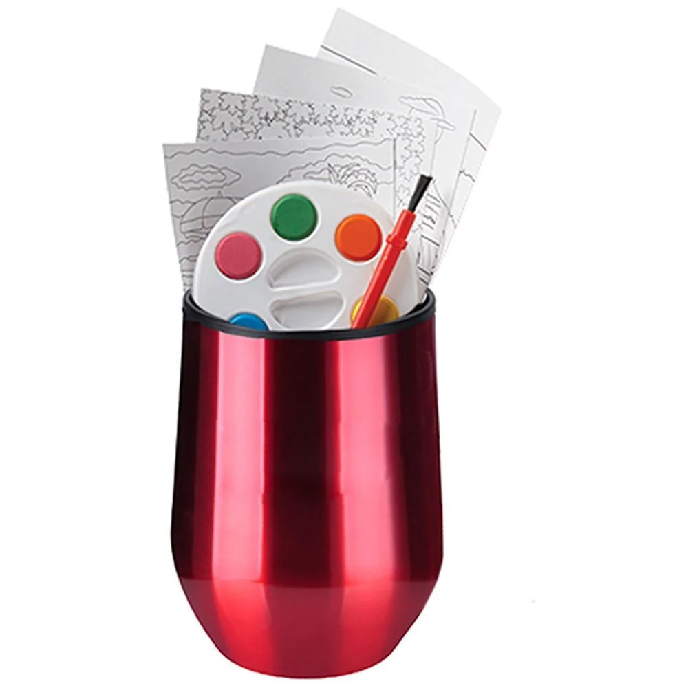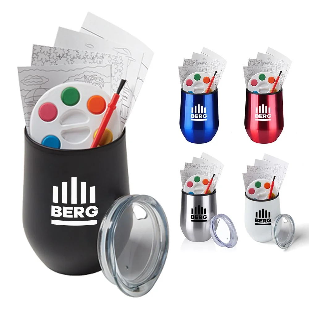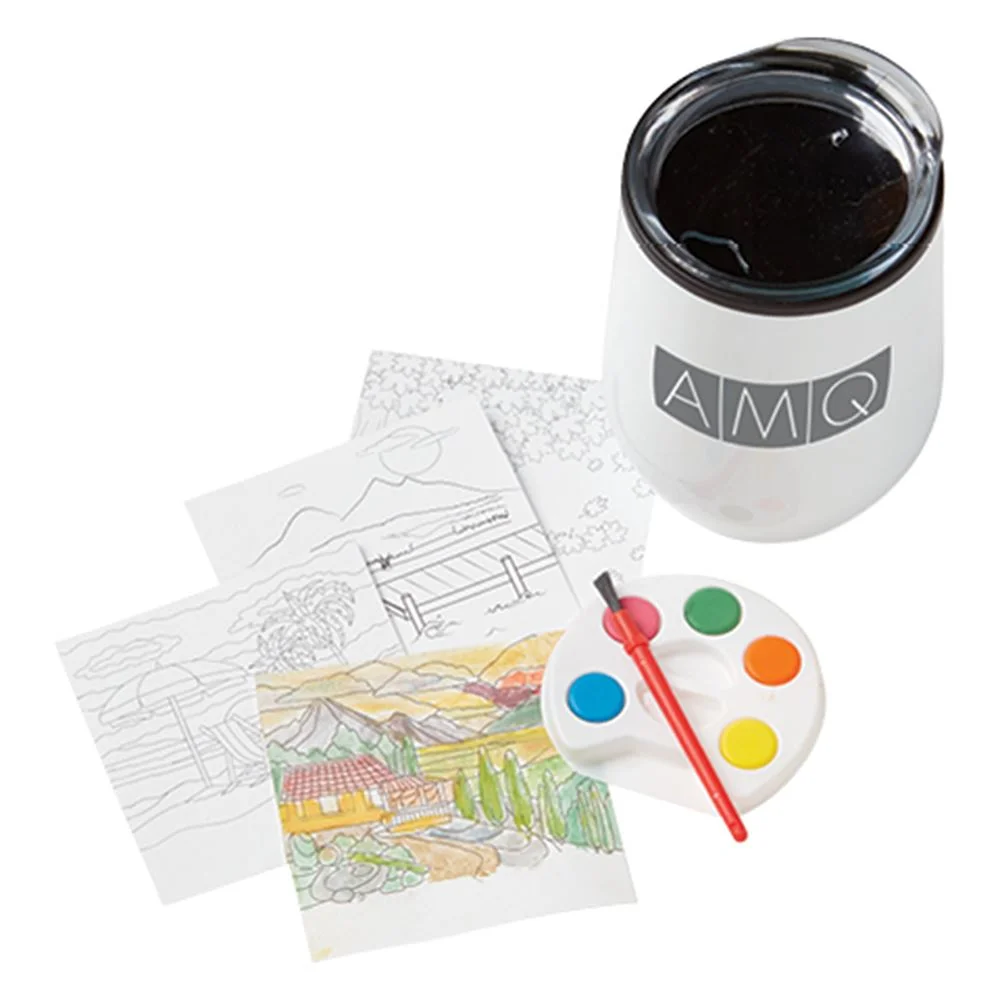 This includes a four-page paint set and a stainless steel wine tumbler that holds up to 12 oz. of liquid