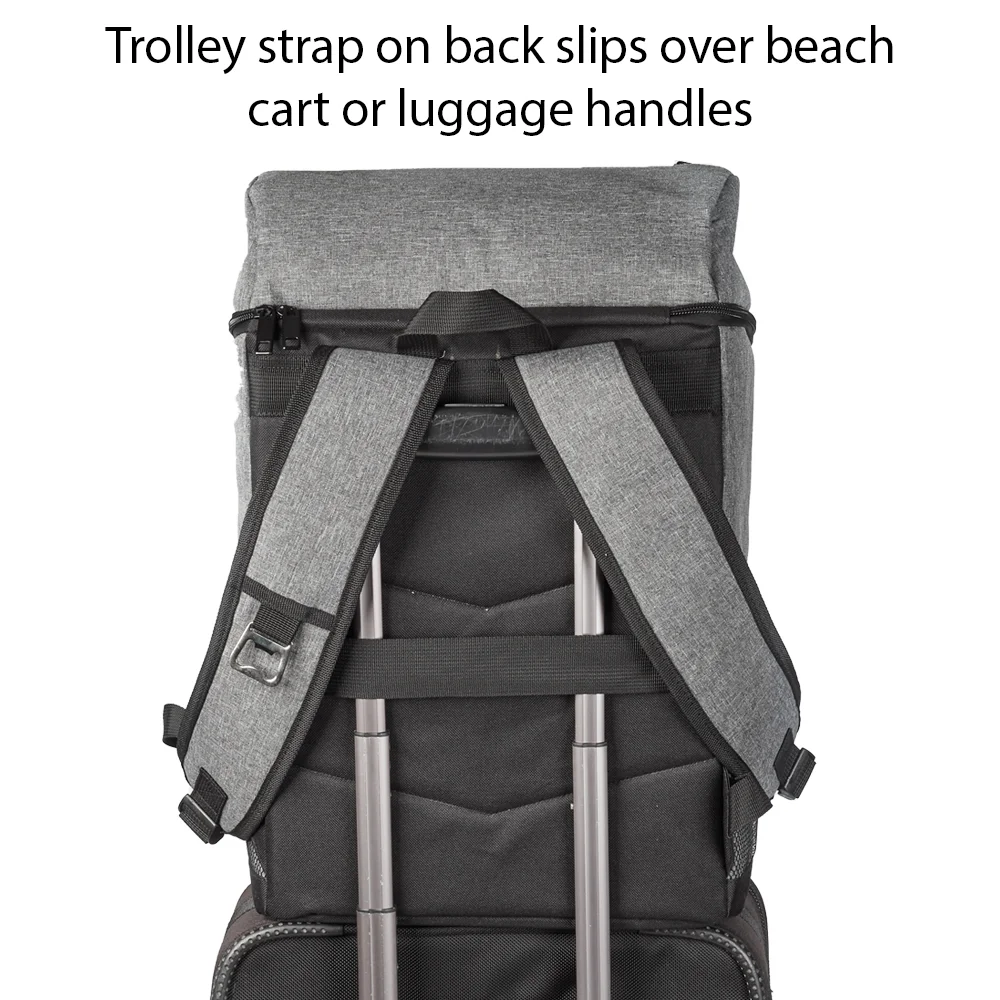 • Padded, adjustable straps for a comfortable, custom fit; top grab handle; trolley strap