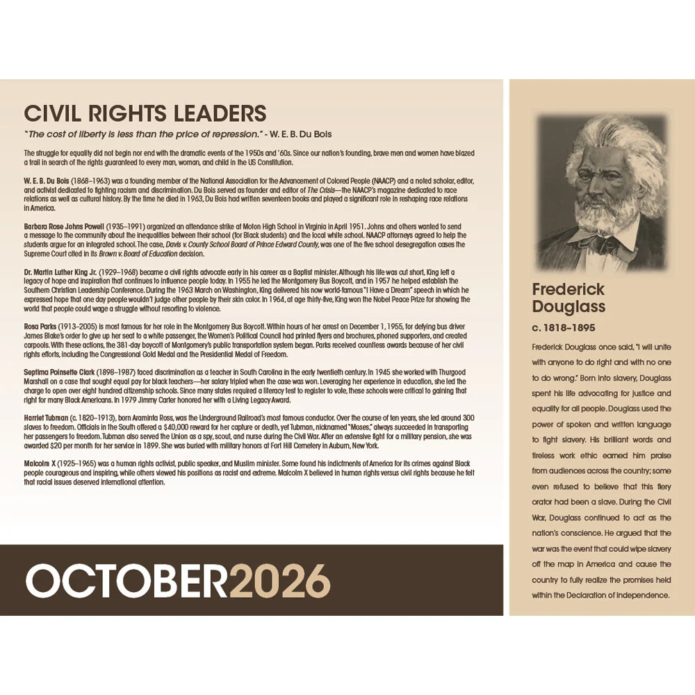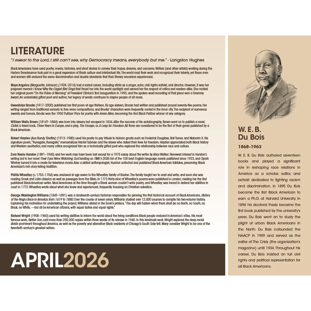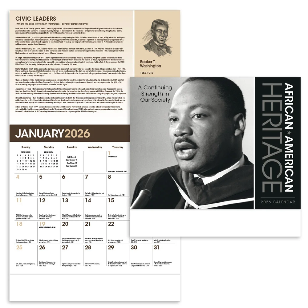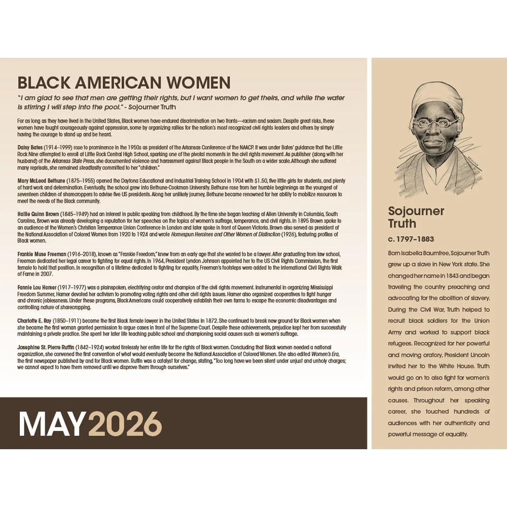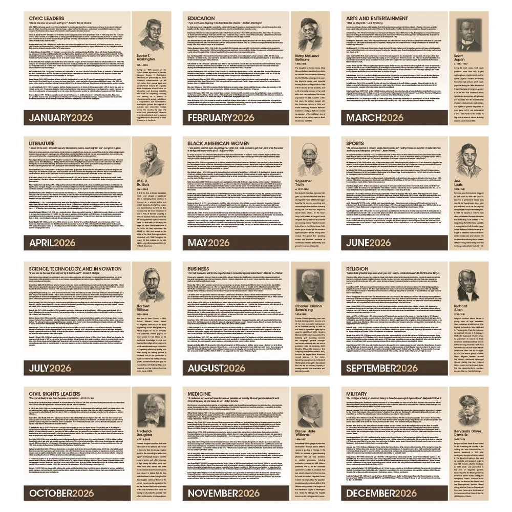 Celebrate the accomplishments of African Americans with this detailed, educational 2026 calendar