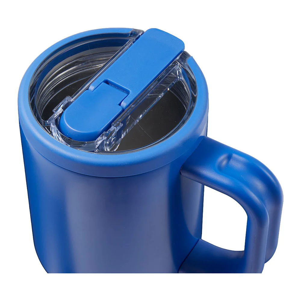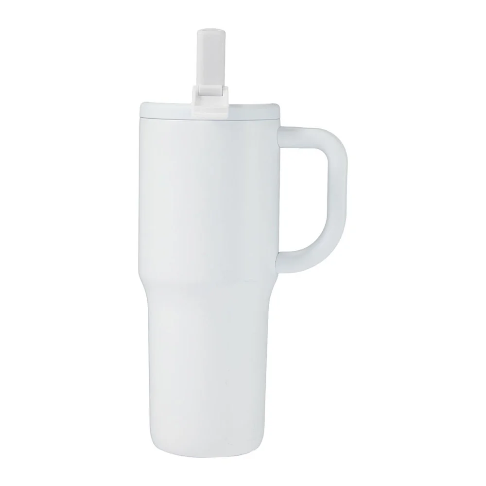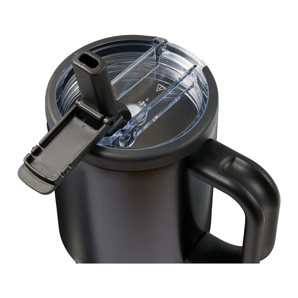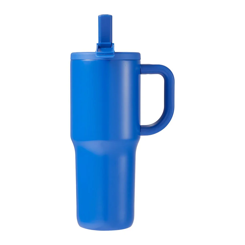 • Tumbler with flip straw and built-in cap