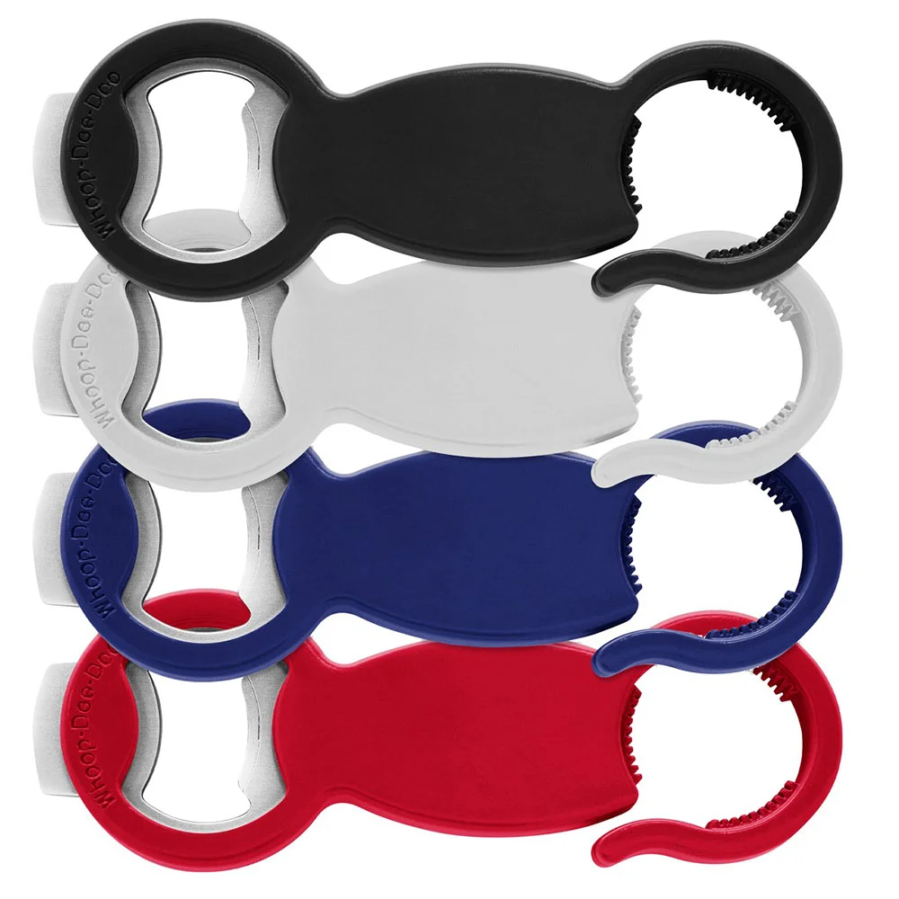 The BTL48 Whoop-Dee-Doo Bottle Opener is a versatile 3-in-1 tool made from anti-microbial plastic, designed to easily open cans, twist tops, and pop tops