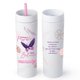 • 2 reusable soft straws included - one pink, one white; Slip through straw port; Stopper on end prevents spills and keeps straw in place
