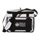 The exterior is constructed of rhino-tech water and stain resistant material and includes a large zippered pocket, 2 mesh pockets, elasticized gear straps and an adjustable back saver shoulder strap that centers load weight to reduce body stress