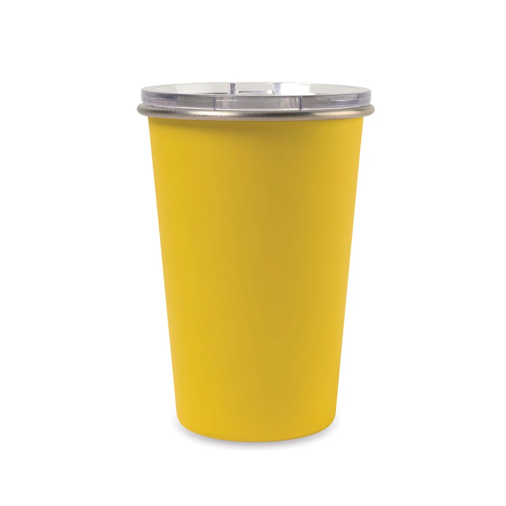 • Reduce single-use cups with reusable, stainless-steel drinkware!