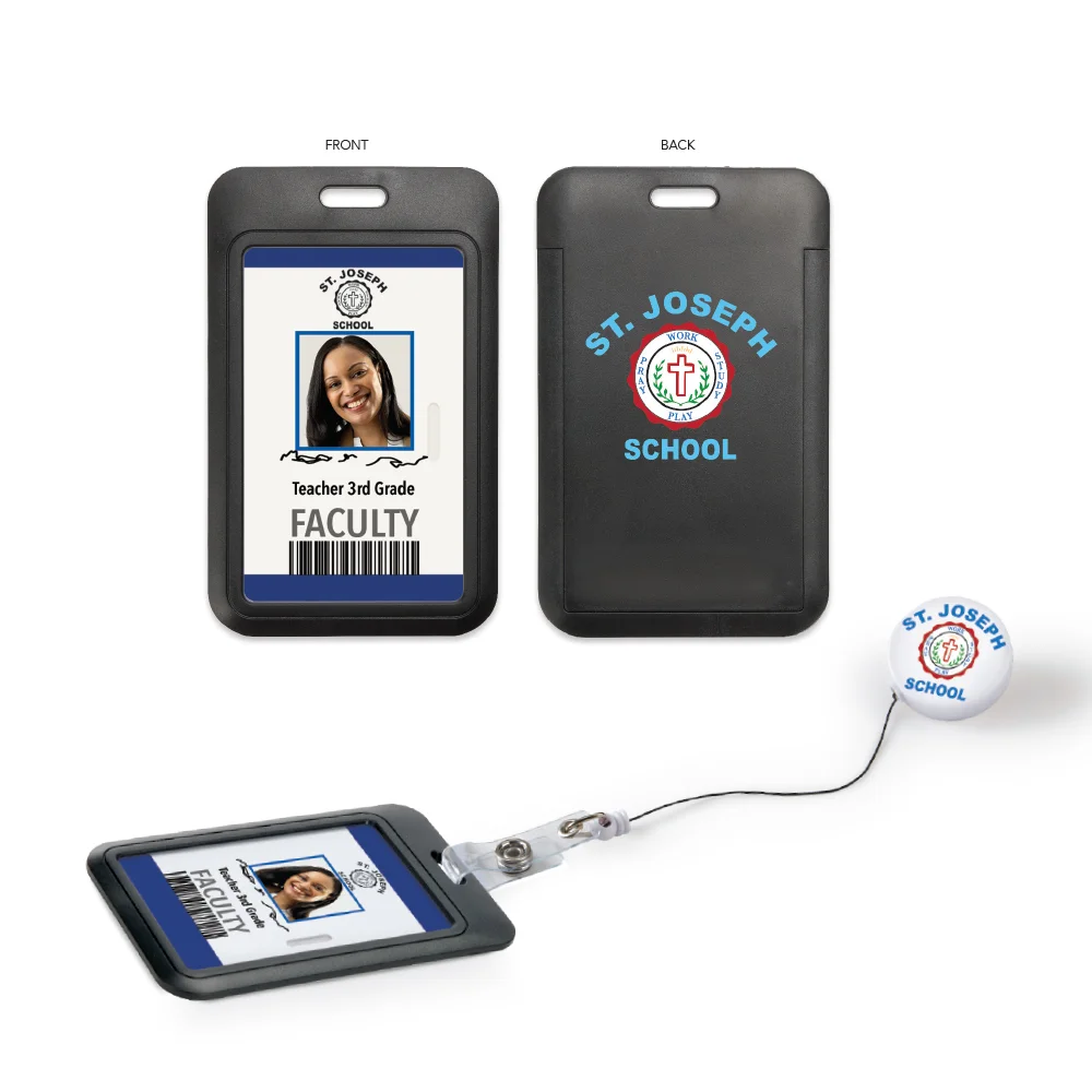 Badge: .9" Diameter, Badge Holder Case: 1.9" X 2 3/4", Up To 5 Lines Or Logo; 15 Characters Per Line