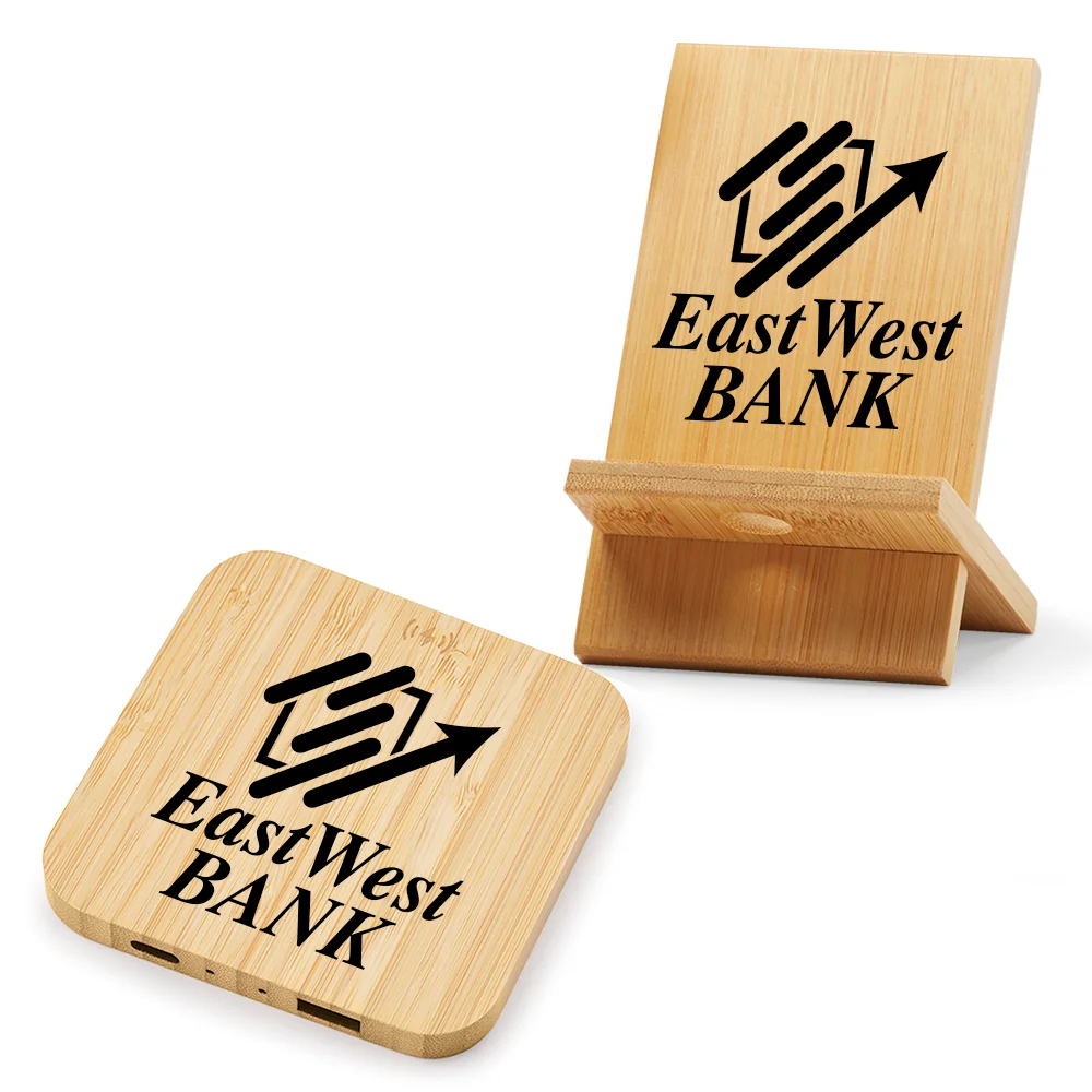 2-piece gift set includes: Bamboo 10W Wireless Charging Pad With Dual Ports & Bamboo Phone/Tablet Holder