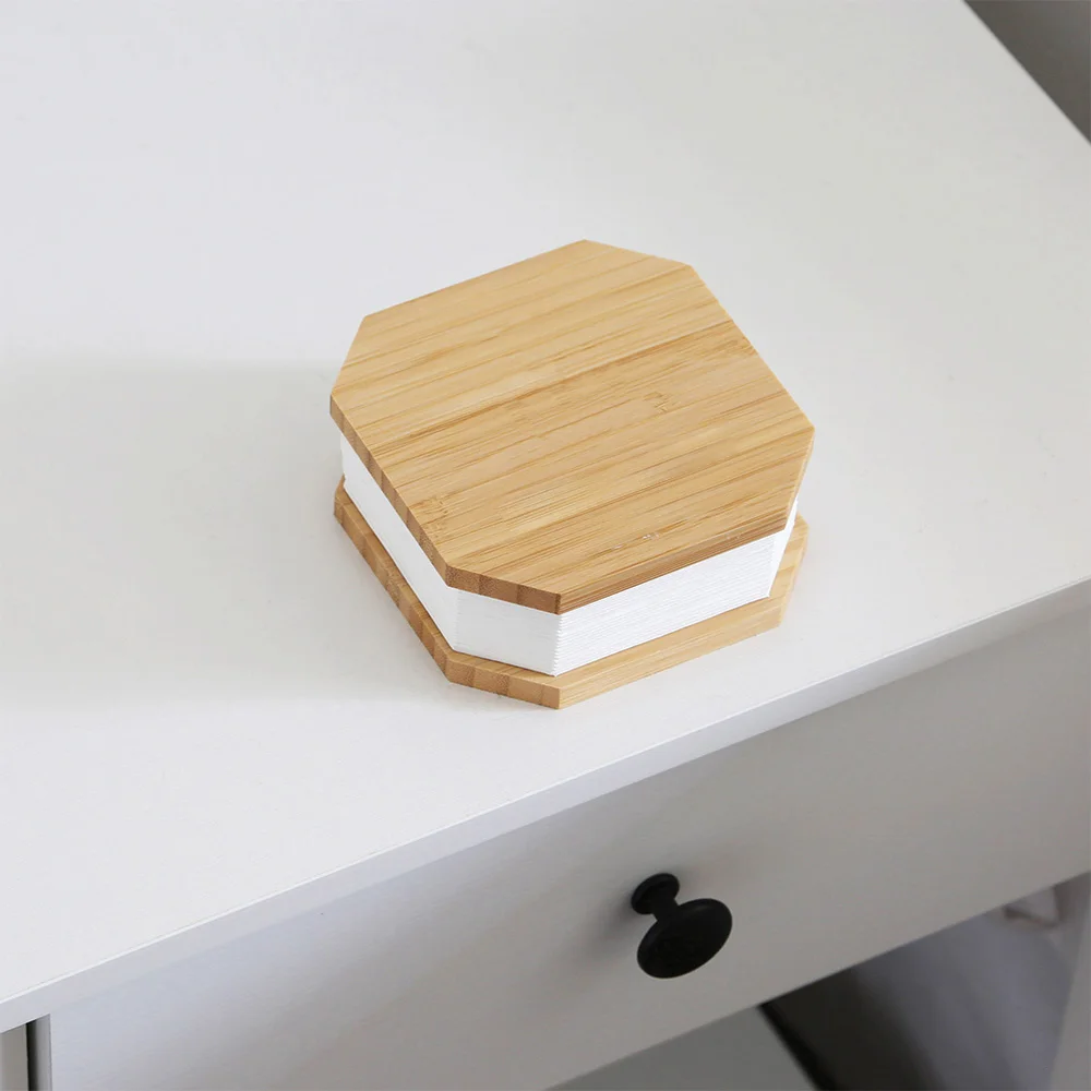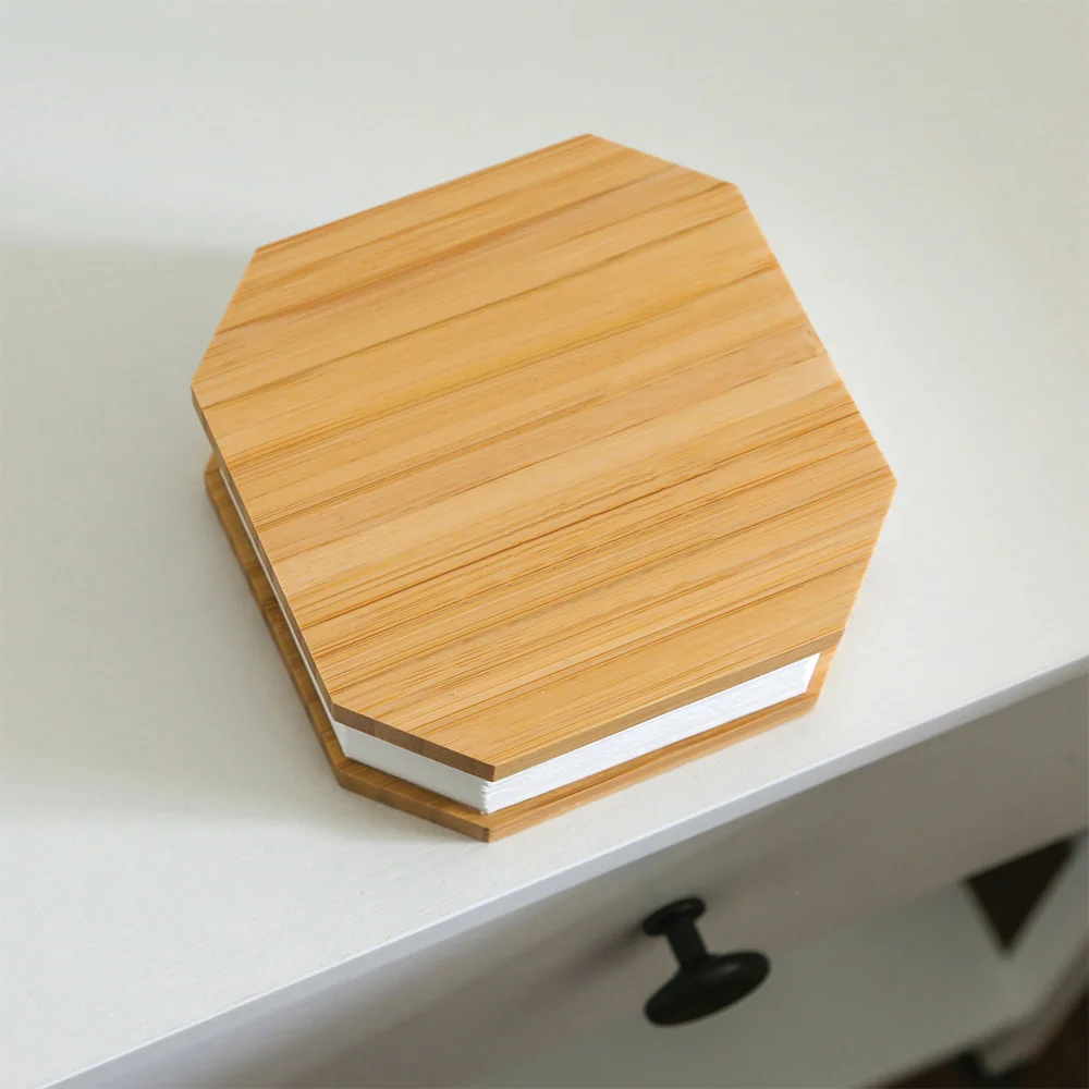 Material: Bamboo, Tyvek Paper, 4"W X 4"L X 1 3/4"H