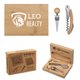 Matching hinged bamboo storage case with magnetic closure included with perfect cutouts for each tool; Keeps everything neatly organized