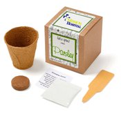 Each fertile pot is packaged in a recycled Kraft gift box and includes one soil pod, one seed packet, one wooden stake and instructions