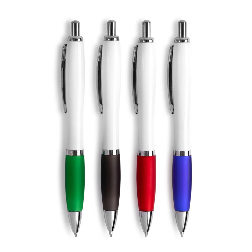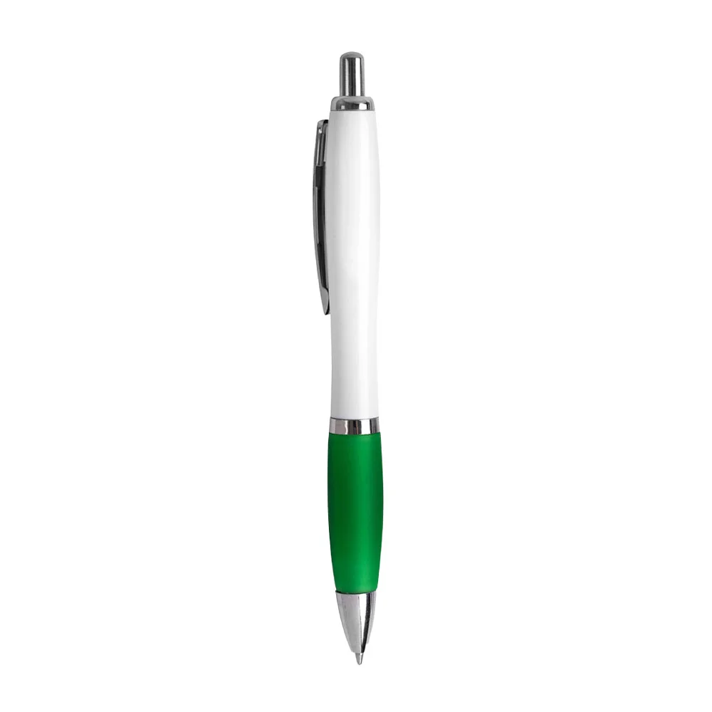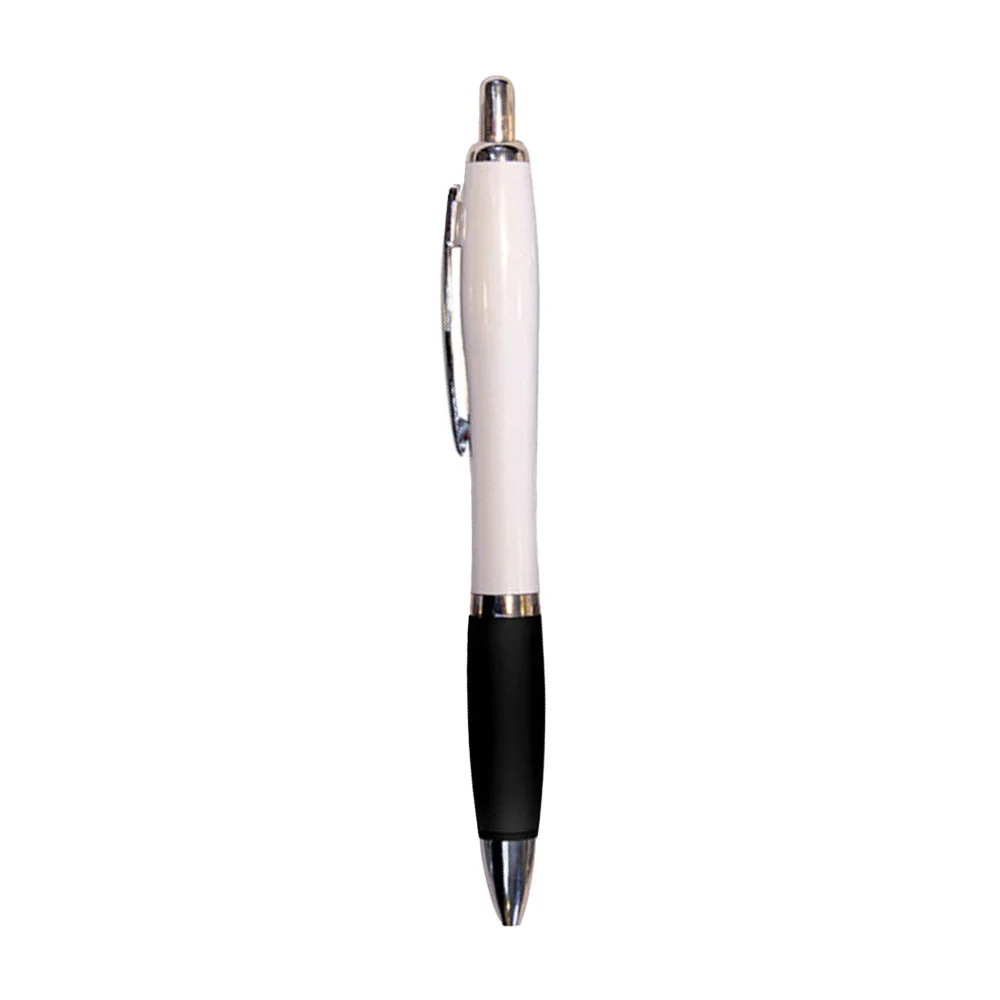 • This exciting, medium point black ink pen has white colored barrels that are contoured and curvaceous