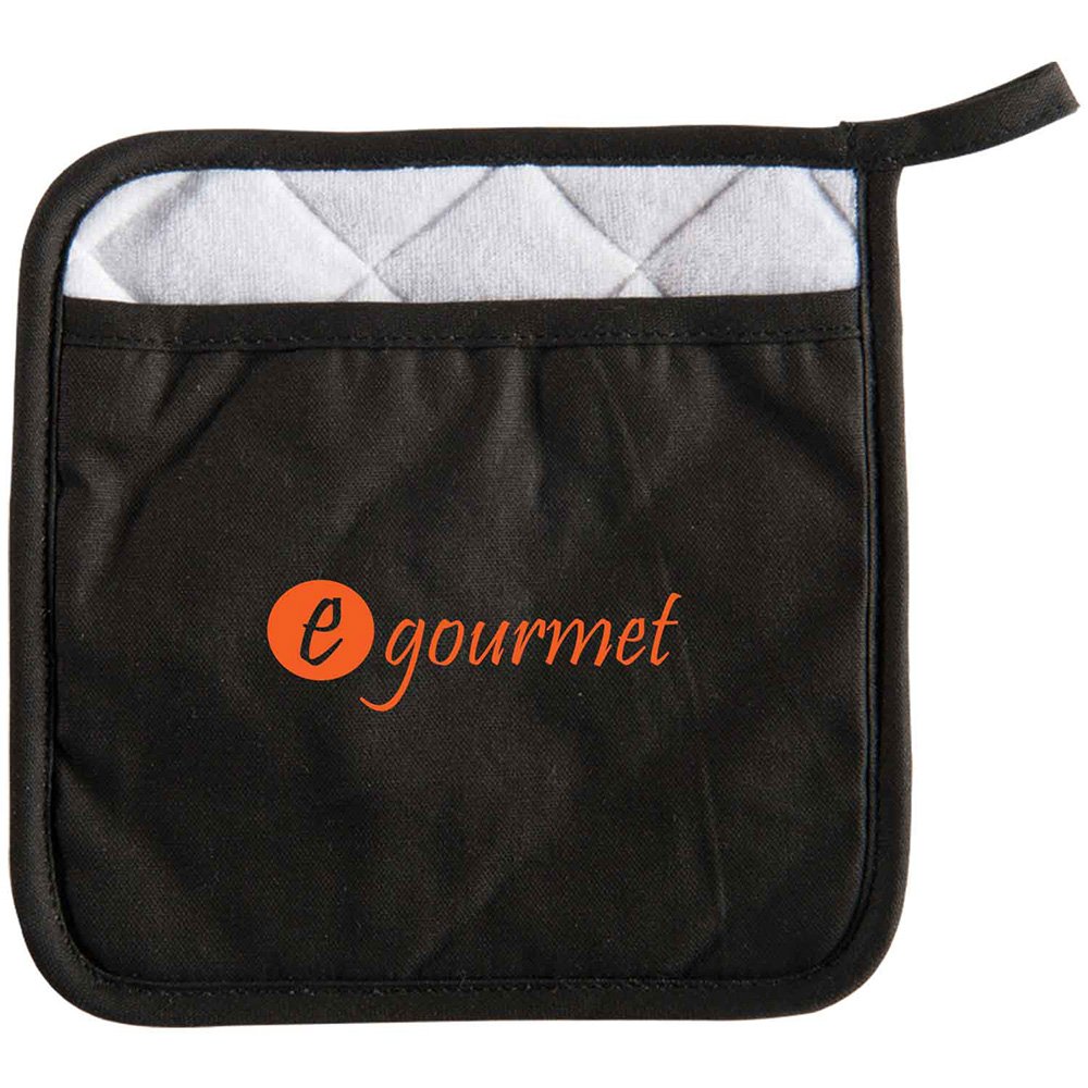 Features slip pocket, heat-resistant underside, and loop for easy hanging