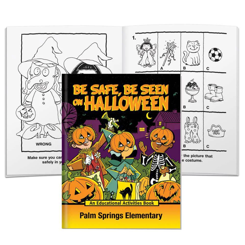 Simple text and activities provide younger children with key Halloween safety tips, including: Carry a flashlight; Trick-or-treat with an adult; Visit only people you know; Have parents check candy
