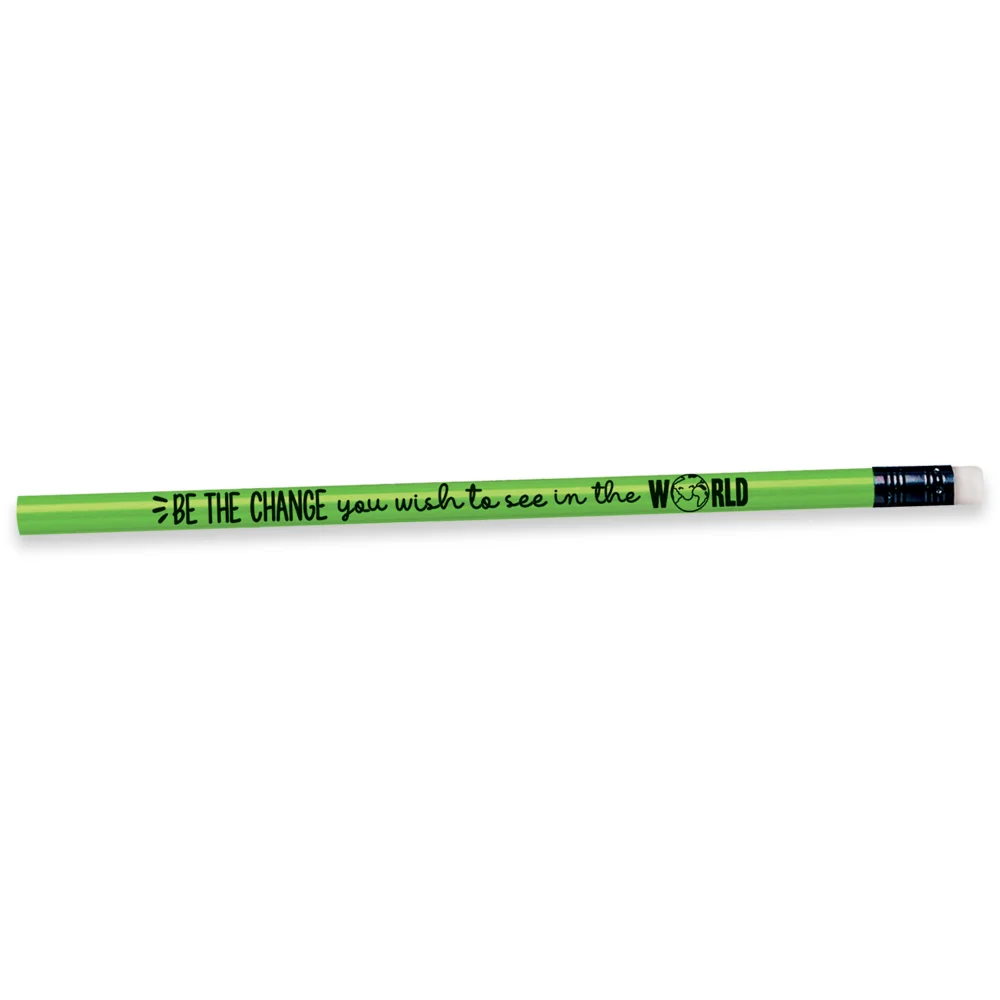 25 Be the Change Heat-Sensitive Pencils: Warmth of kids' hands changes color from dark to light green; Five ways to make positive changes on back: Be kind; Be honest; Be strong; and two more; Soft eraser; #2 standard
