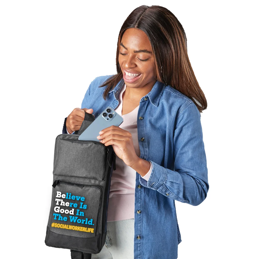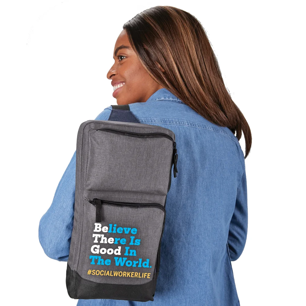 • Features our exclusive Be the Good: #SocialWorkerLife design on lower front pocket