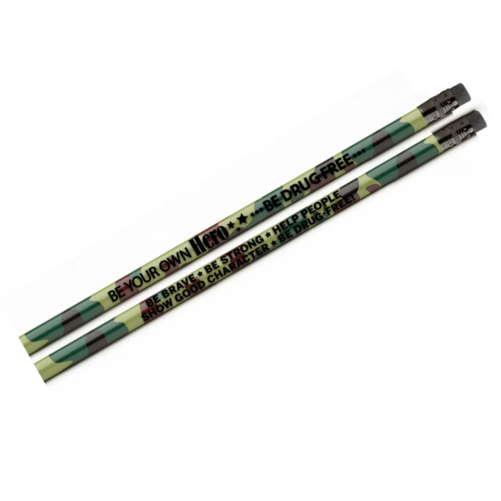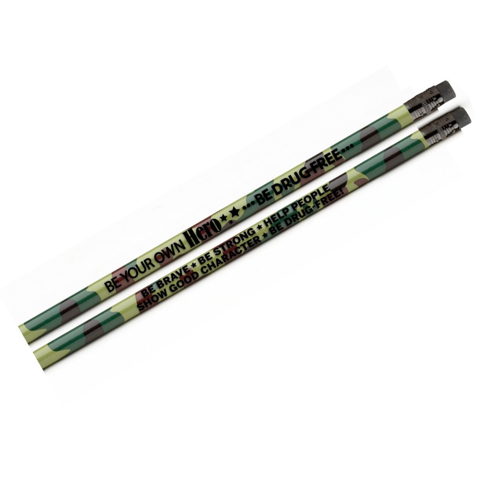 • Kids will love the bold camouflage design and will take note of this pencil's drug-free message and positive tips each time they write