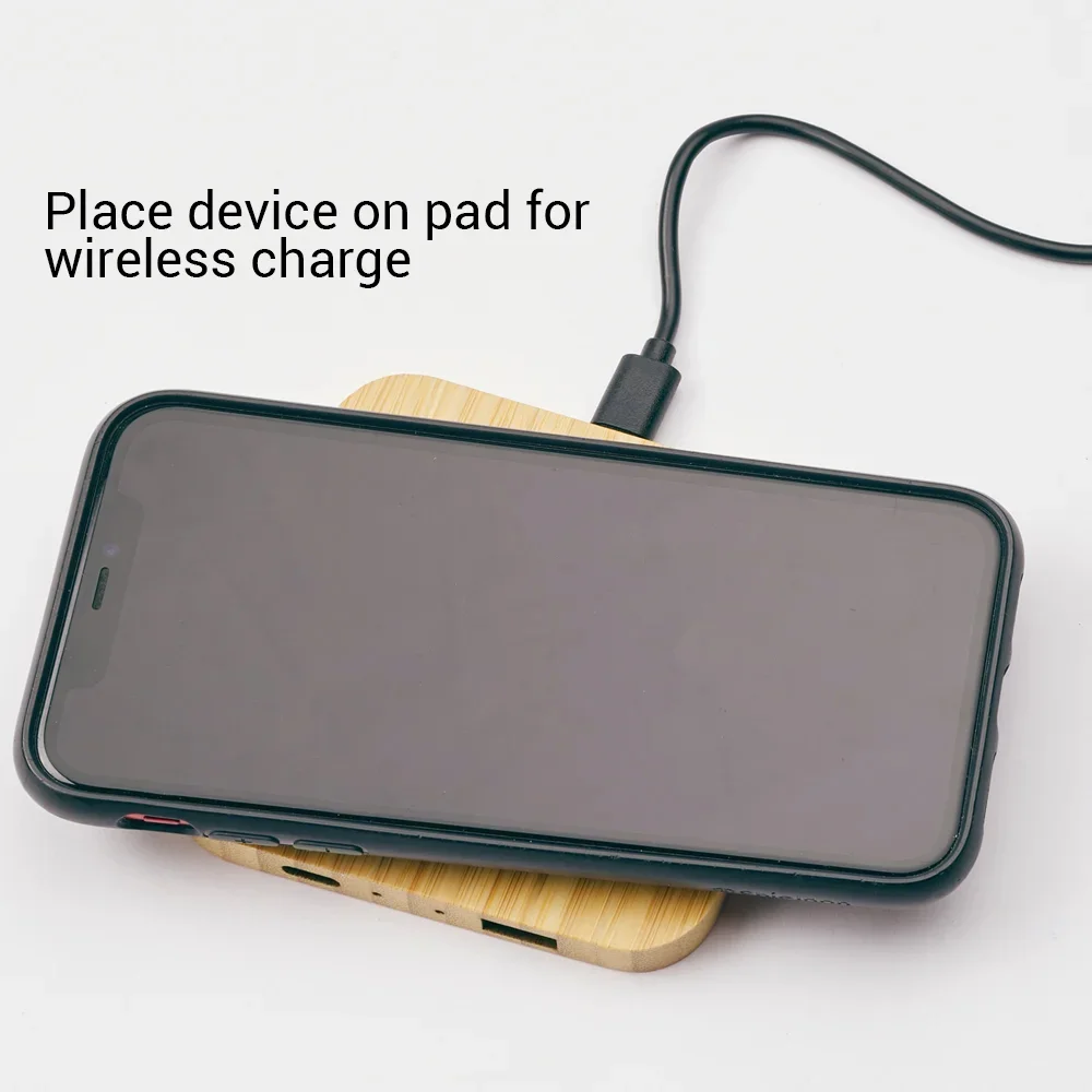 Because of You... Bamboo 10W Wireless Charging Pad with Dual Ports