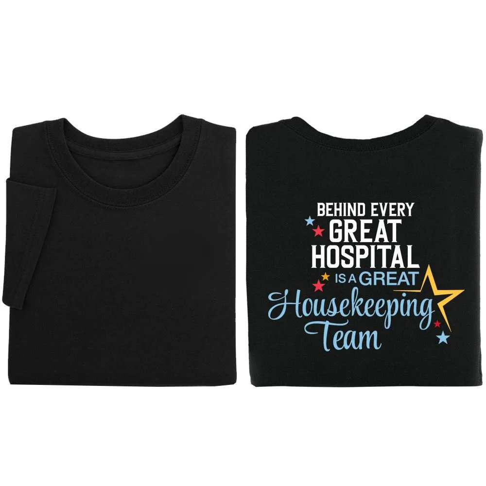 Housekeeping: An Awesome Team Keeping It Clean Unisex 2-Sided Short-Sleeved T-Shirt - Silkscreened Personalization Available