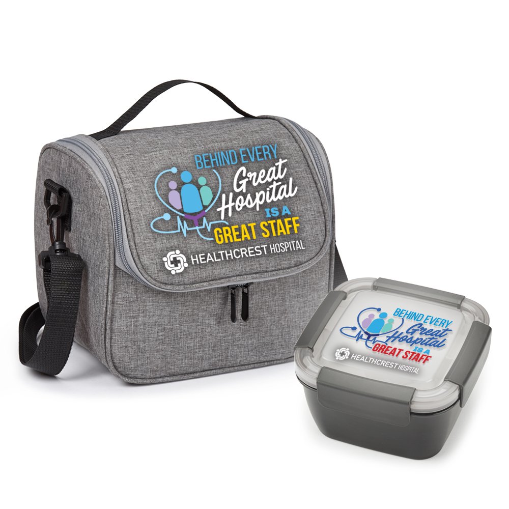 2-piece gift set includes: Portland Lunch/Cooler Bag & Locking Food Container With Compartments 54 oz.