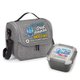 Personalized Lunch/Cooler Bag: Dual-zip, foam-insulated, leak-resistant compartment ideal for stacking containers or up to 6 cans with ice; Interior is easy to wipe clean in case of any spills; Fits most food containers for convenient meals on the go; Exterior slip pocket for napkins and quick-grab items; Heathered 300-denier material with bright-blue lining and PEVA foam insulation; Adjustable, removable strap for shoulder or crossbody carry; Top carry handle; ID window on the back