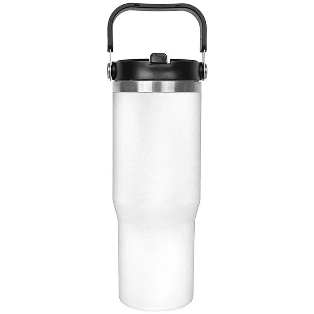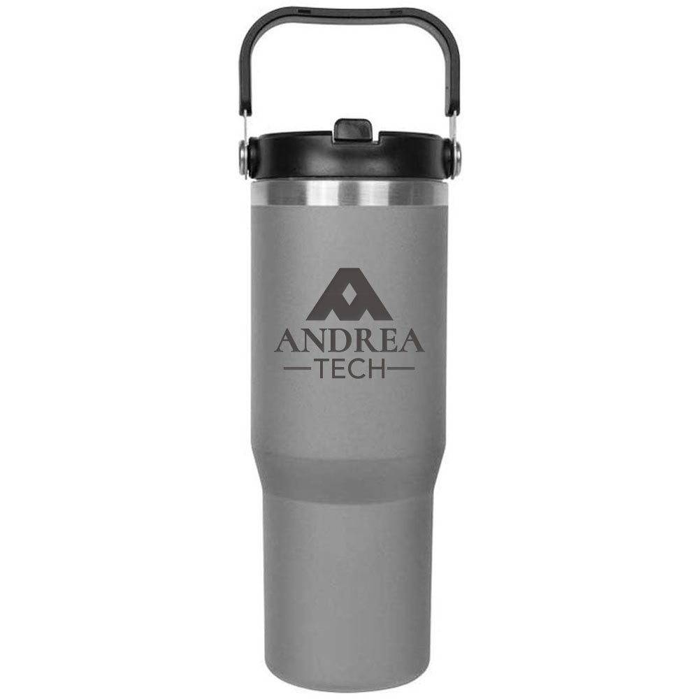 Berg Stainless-Steel Tumbler 30 oz. With Top Carry Handle & Flip Straw - Laser-Engraved Personalization Available