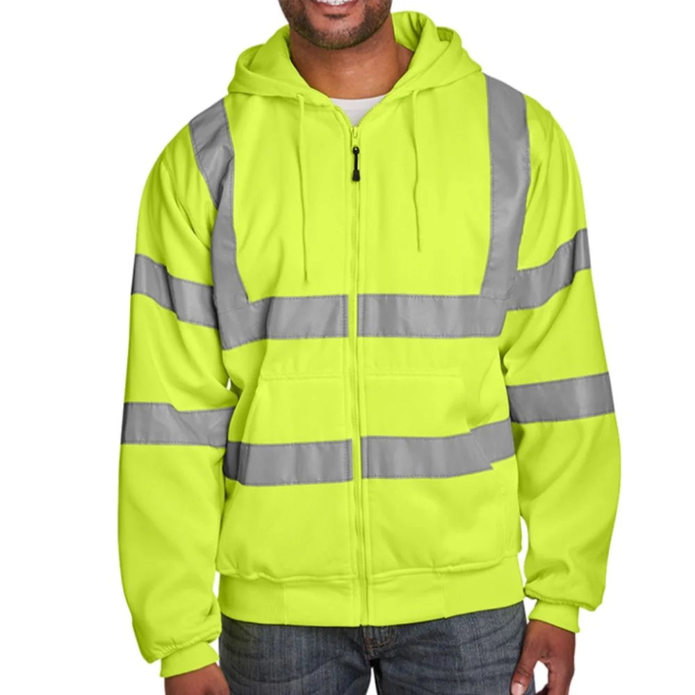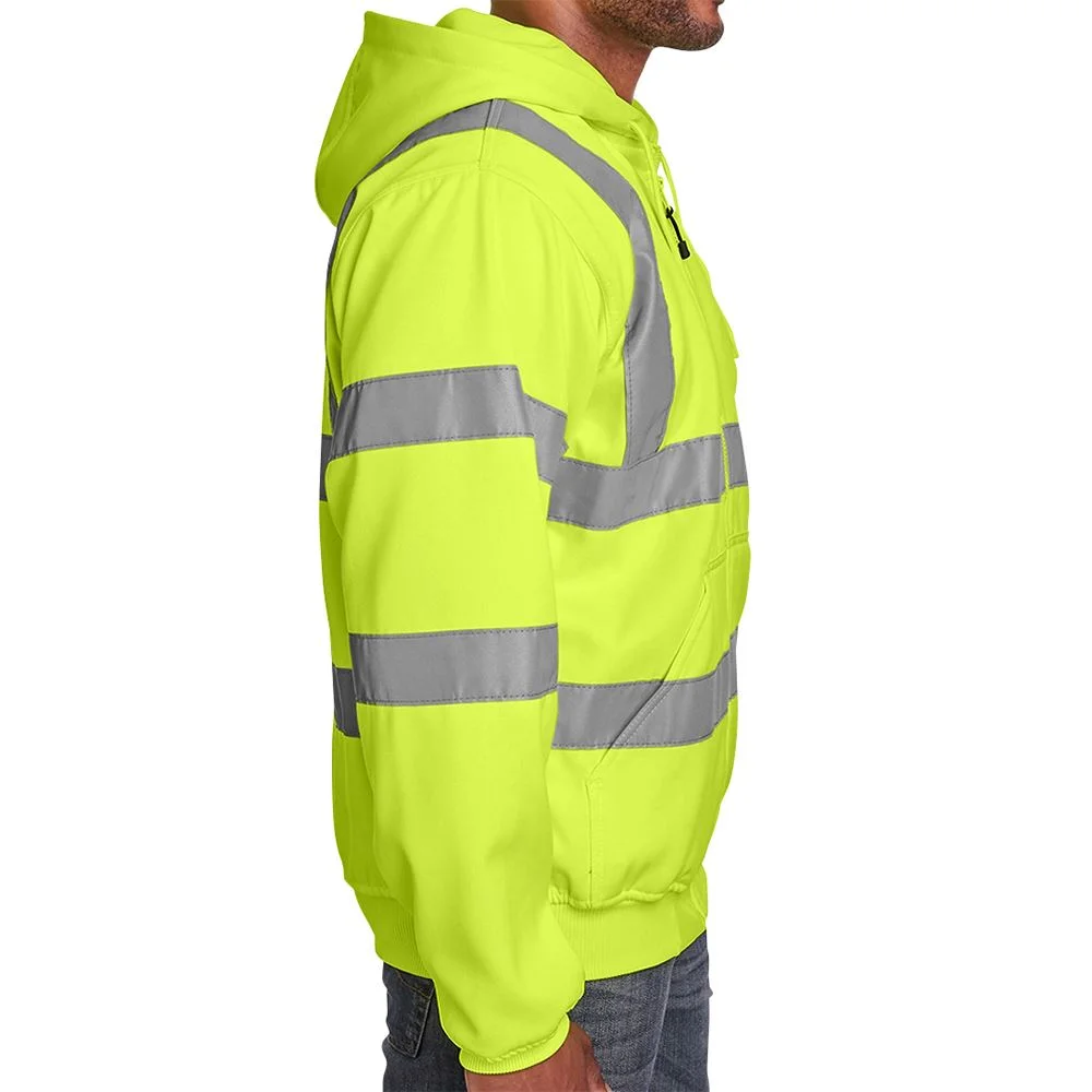 Berne Men's Hi-Vis Class 3 Lined Safety Full-Zip Hooded Sweatshirt -Embroidered Personalization Available