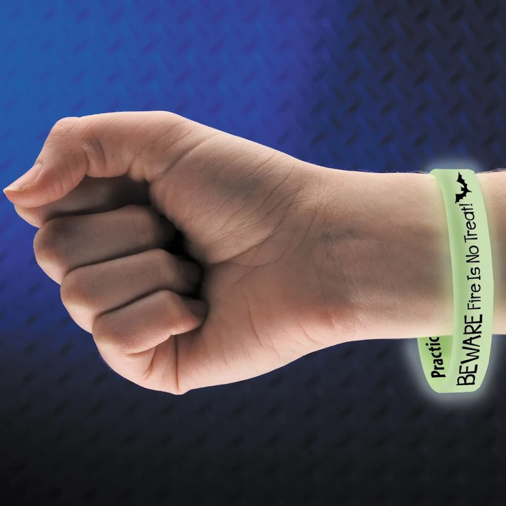 • Glow-in-the-dark 2-sided wristband helps keep trick-or-treaters visible on Halloween and reminds them to practice fire safety every day