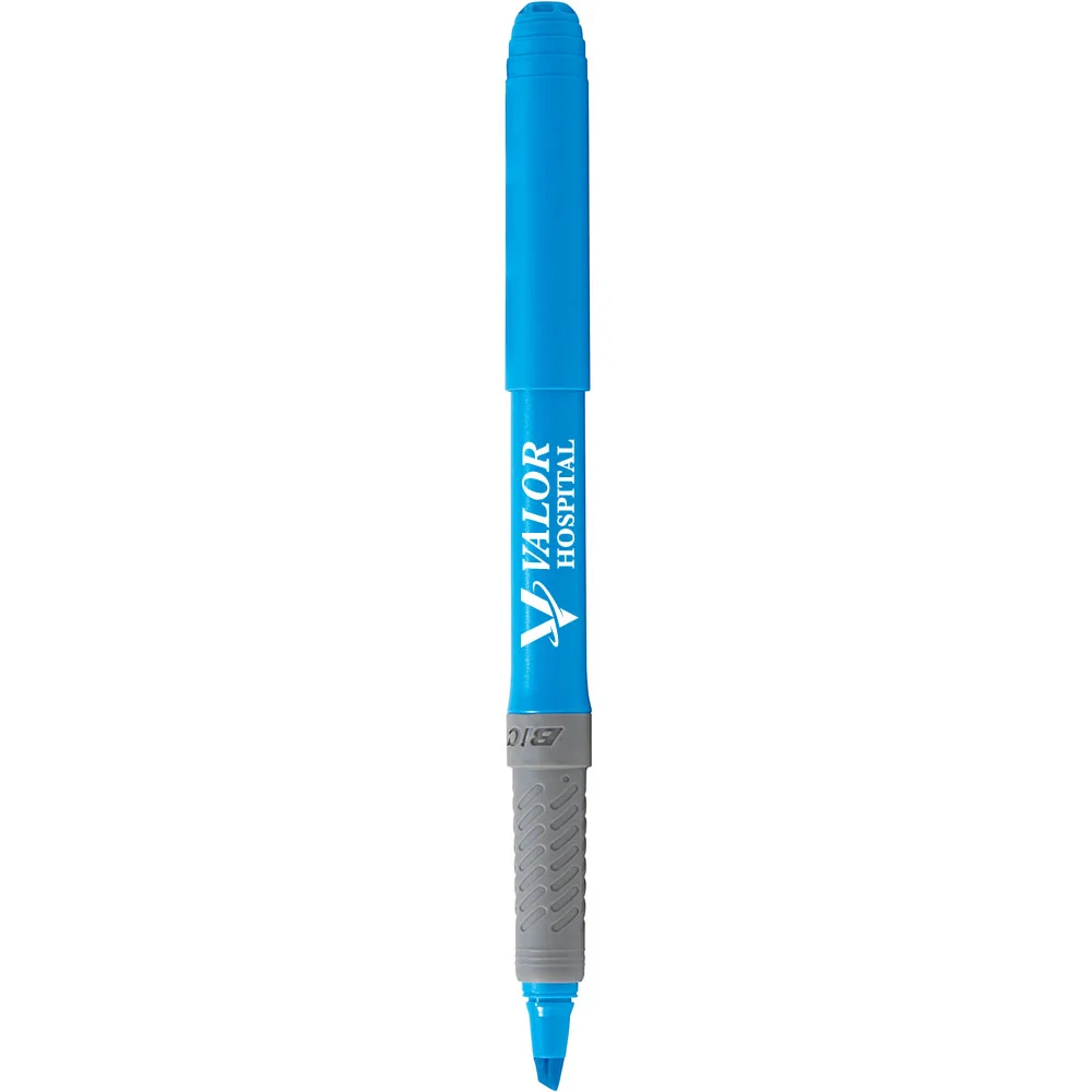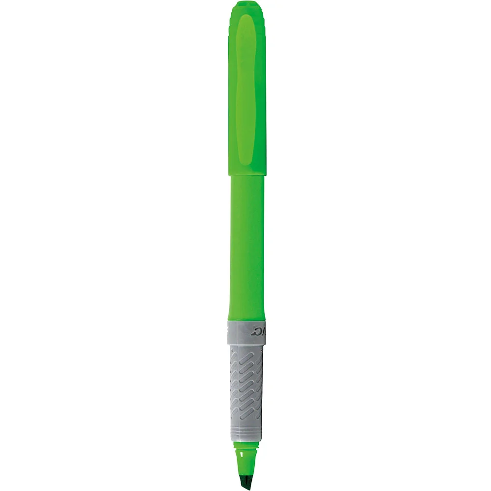 Ink won't dry out, even if cap is left off for a week! Each highlighter features textured rubber grip and thin and broad chisel tip. Choose from 5 bright colors.