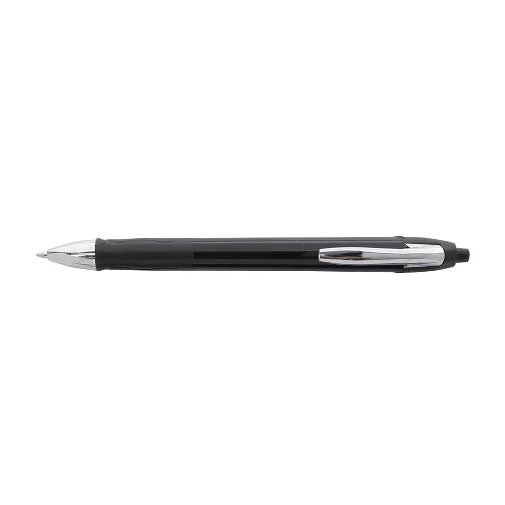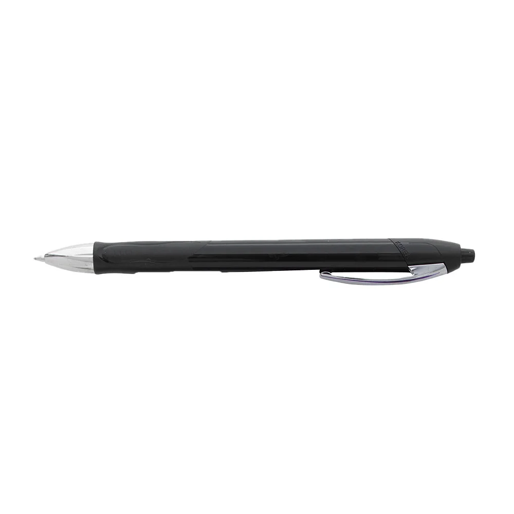 • This plunger-action pen features a translucent comfort rubber grip, a chrome metal clip, and an ultra-smooth gel roller with fast-drying gel