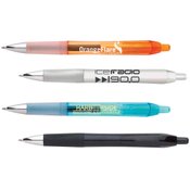 Available in solid opaque white or black barrel with medium point gel ink in blue or black, or eye-catching translucent barrel with blue or black ink or ink matching barrel colors